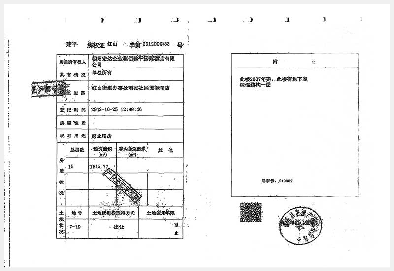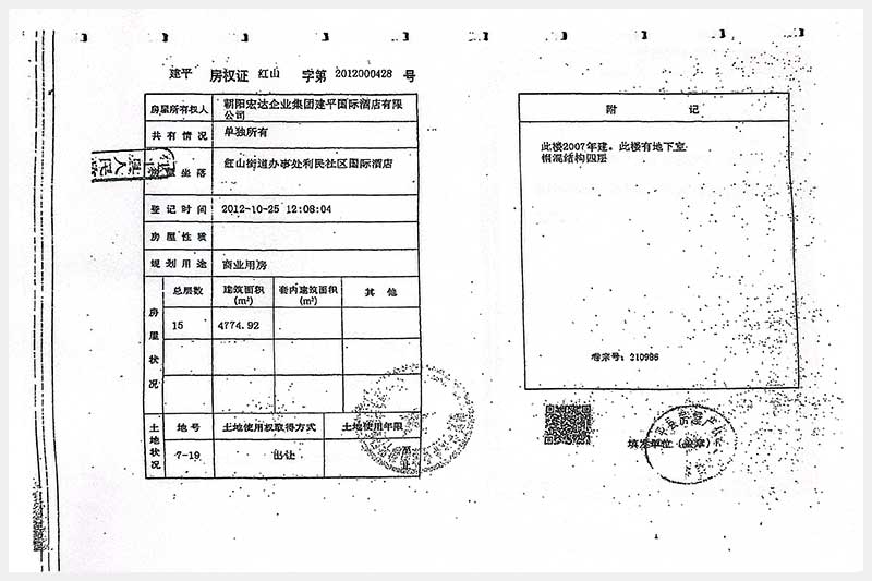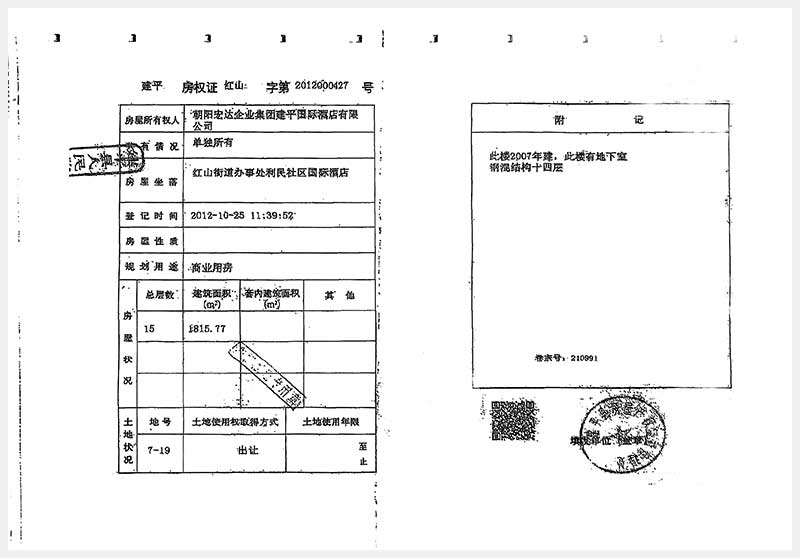 274號 朝陽市建平縣紅山街道辦事處利民社區(qū)國際酒店房產及土地使用權
