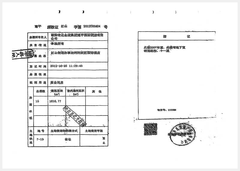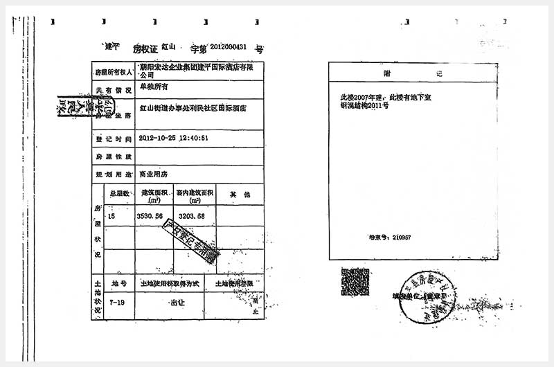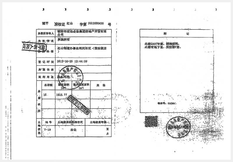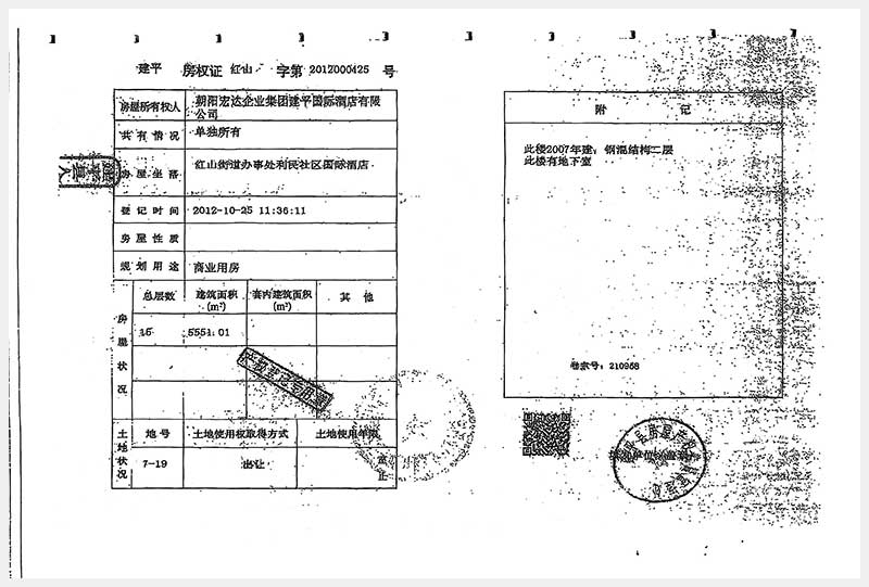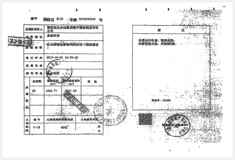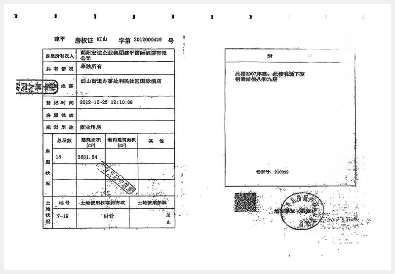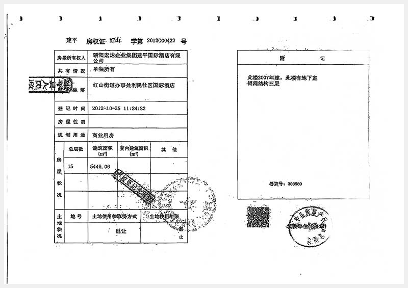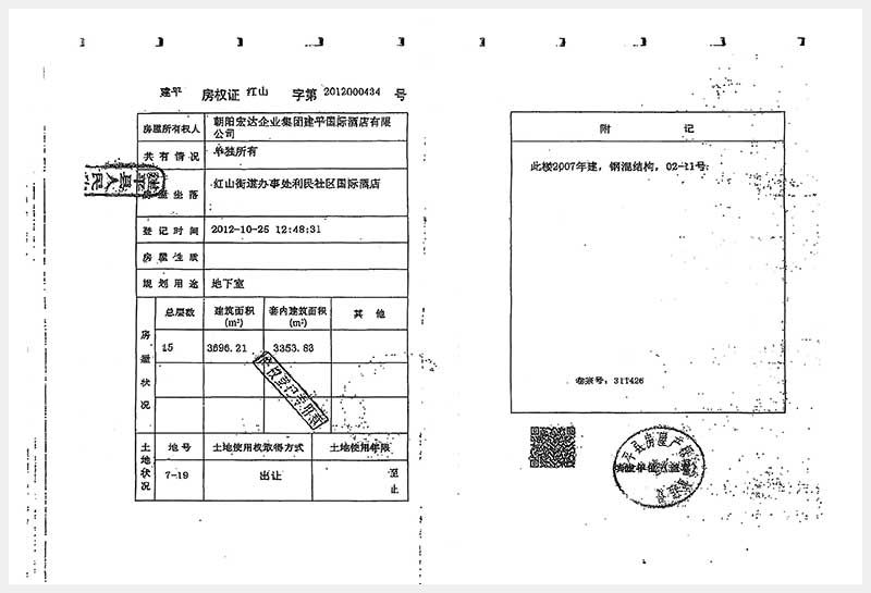 名稱:朝陽市建平縣紅山街道辦事處利民社區(qū)國際酒店房產及土地使用權 面積:房產:3802㎡;土地:2574㎡ 瀏覽次數(shù):65