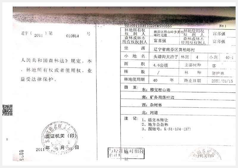 33號 南芬區(qū)黃柏村頭道溝林權(quán)