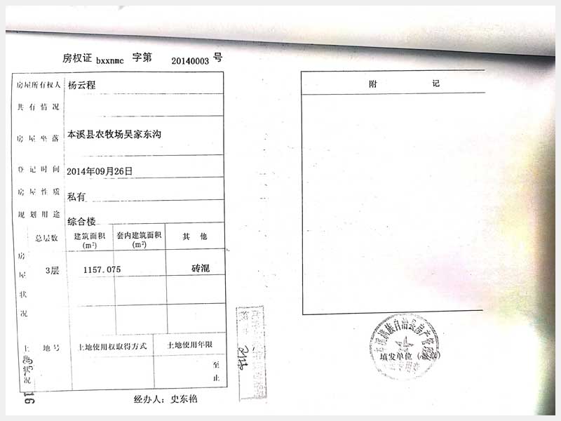 名稱:本溪縣農(nóng)牧場吳家東溝房產(chǎn) 面積:1157.075㎡ 瀏覽次數(shù):1572