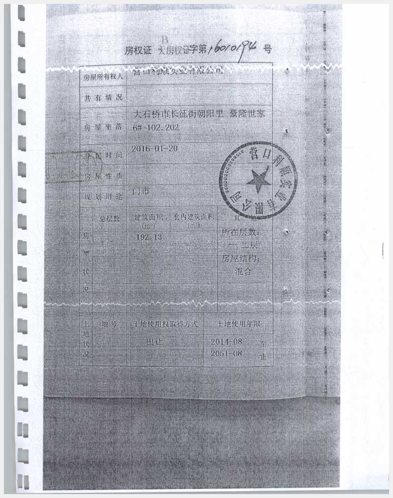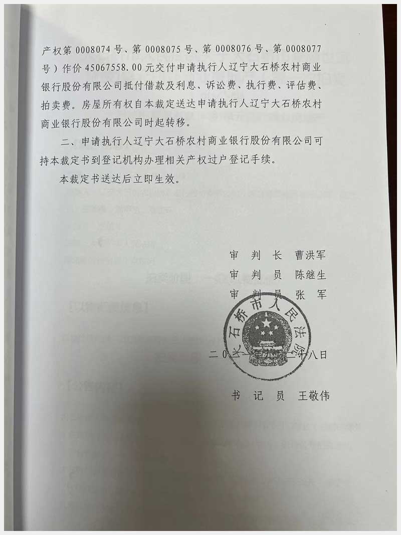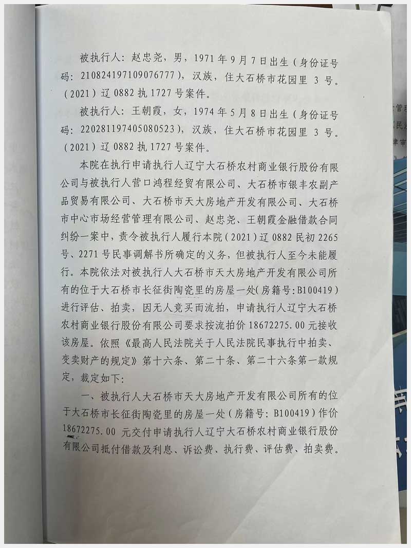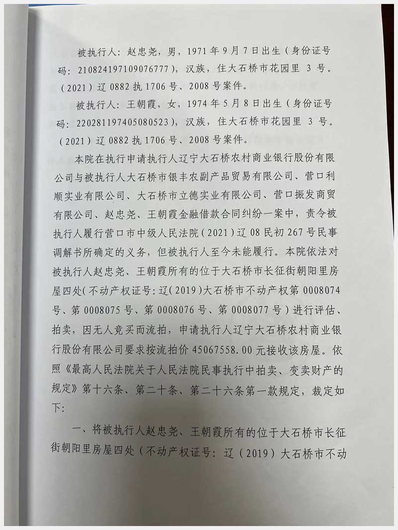 地址:大石橋市長征街朝陽里豪隆世家 標的號:8