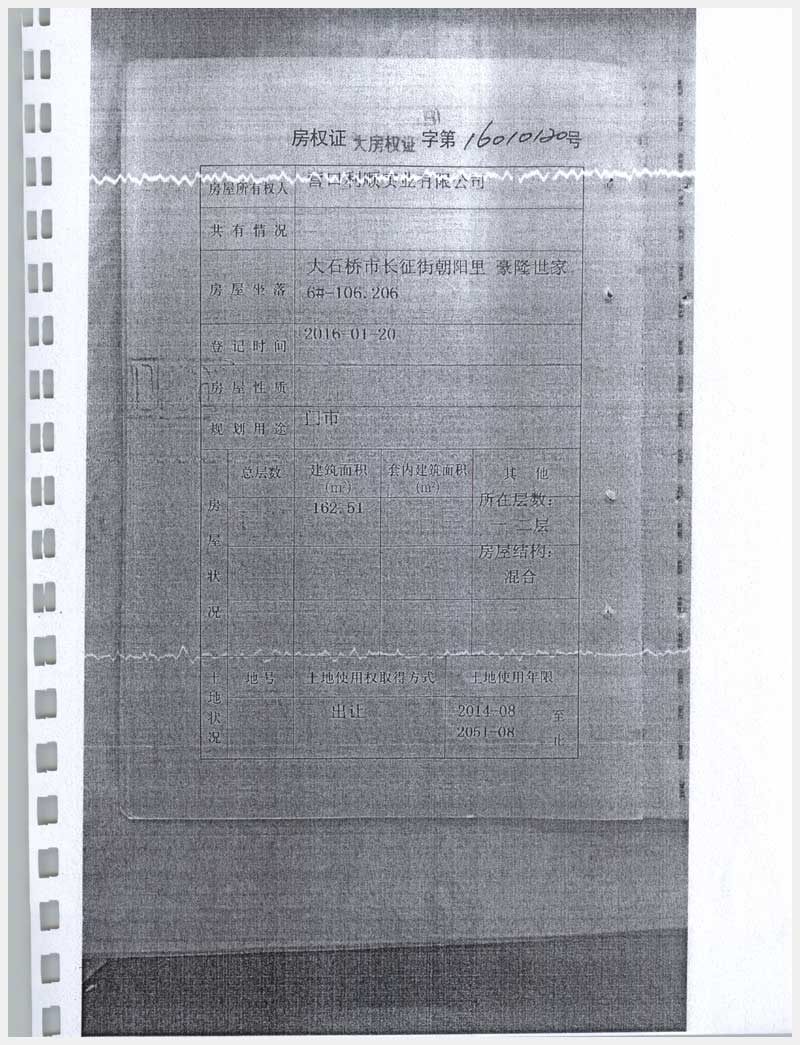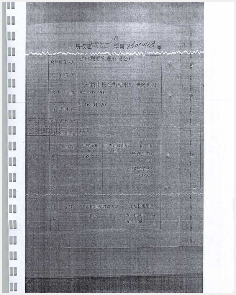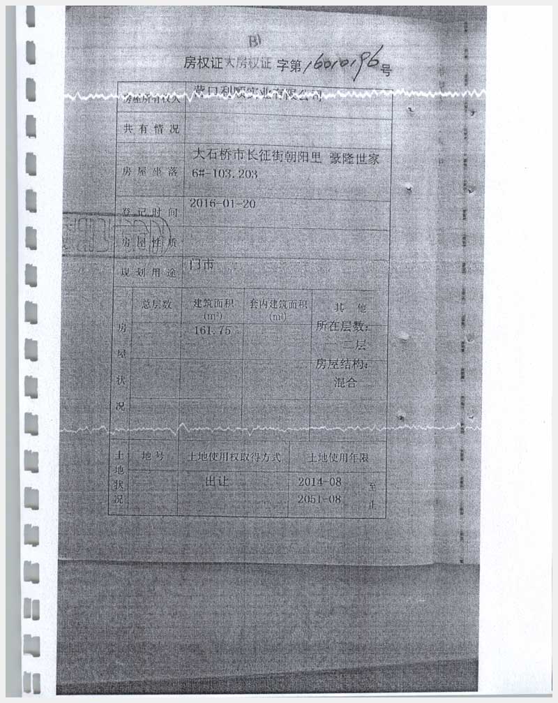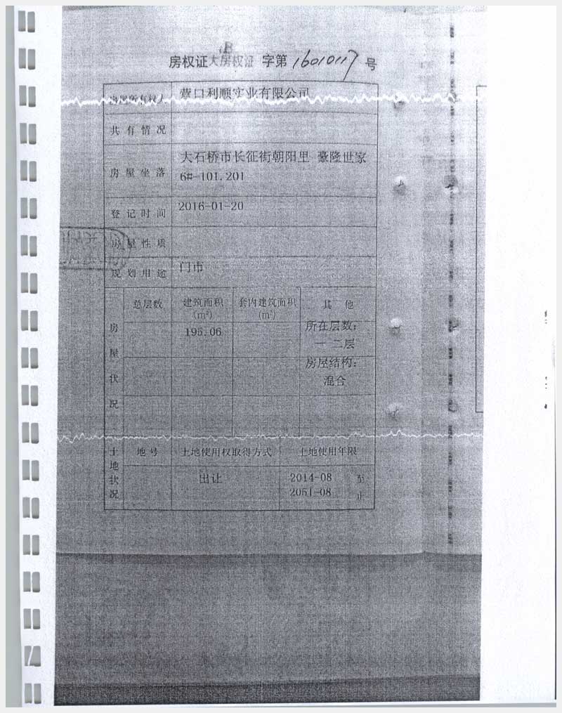 地址:大石橋市長征街朝陽里豪隆世家 標的號:8
