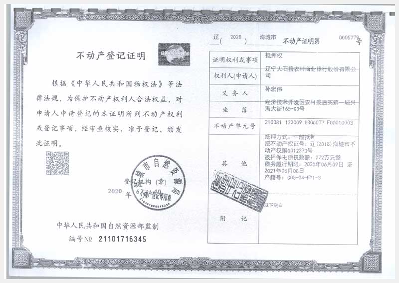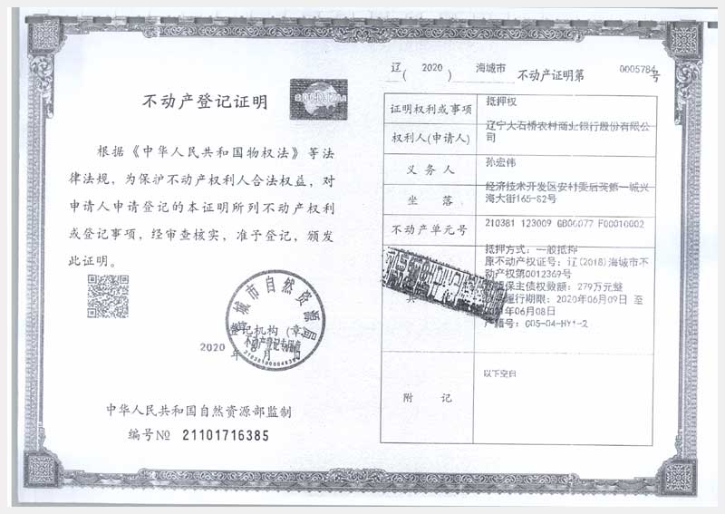地址:海城市經(jīng)濟(jì)技術(shù)開(kāi)發(fā)區(qū)安村委后英第一城 標(biāo)的號(hào):16