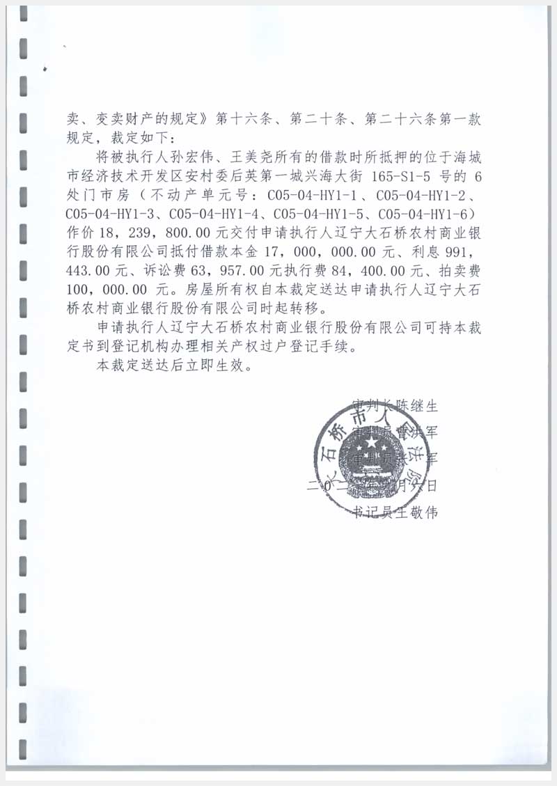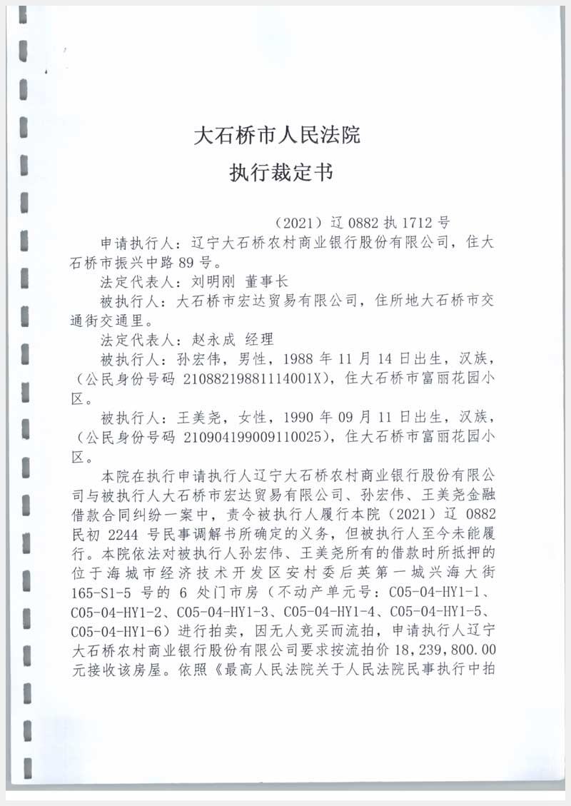 16號(hào) 海城市經(jīng)濟(jì)技術(shù)開(kāi)發(fā)區(qū)安村委后英第一城興海大街165-S1-6號(hào)6處房產(chǎn)
