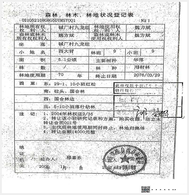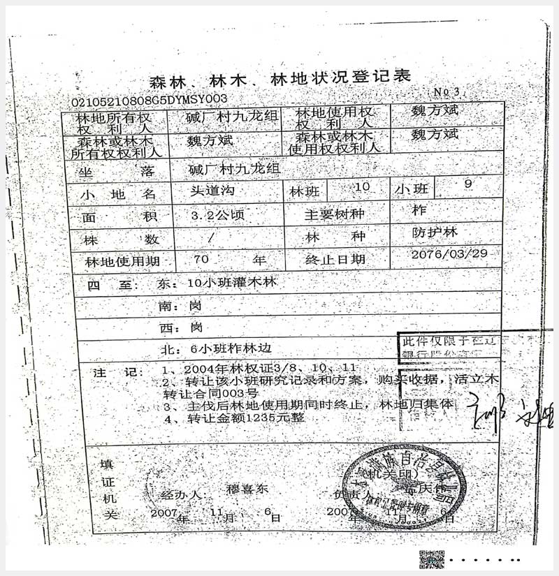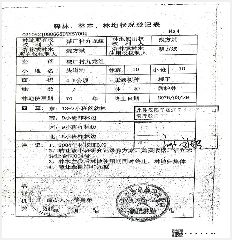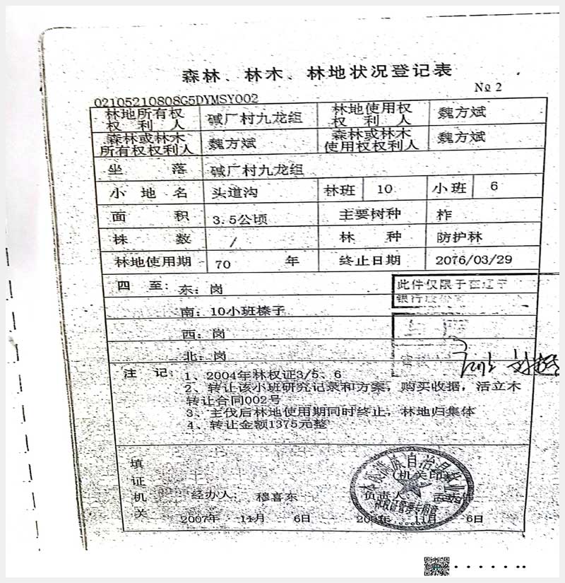 名稱:本溪滿族自治縣堿廠鎮(zhèn)九龍組林權(quán) 面積:17.6公頃 瀏覽次數(shù):609