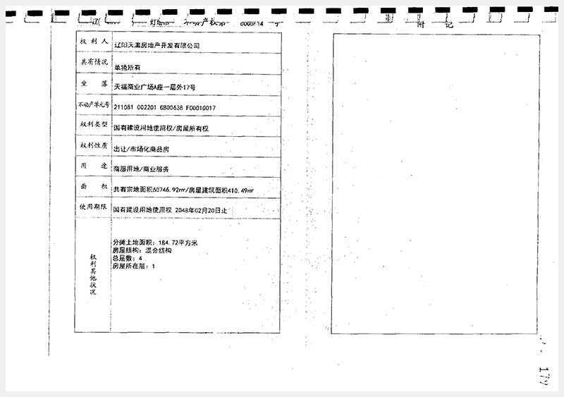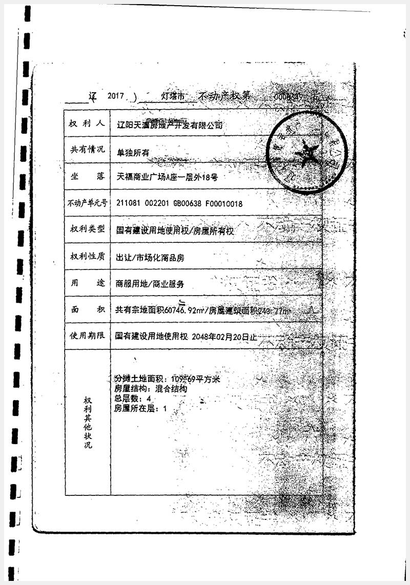 38號 遼陽市燈塔市天福商業(yè)廣場A座門市及商鋪
