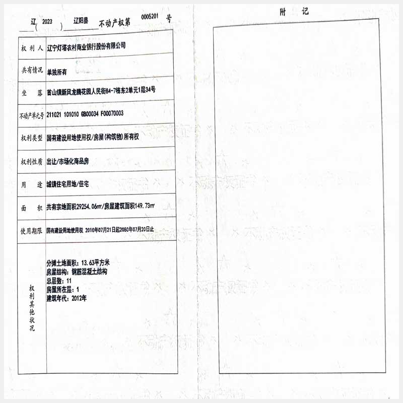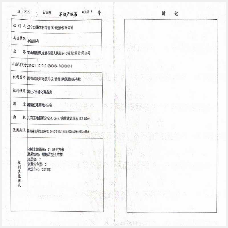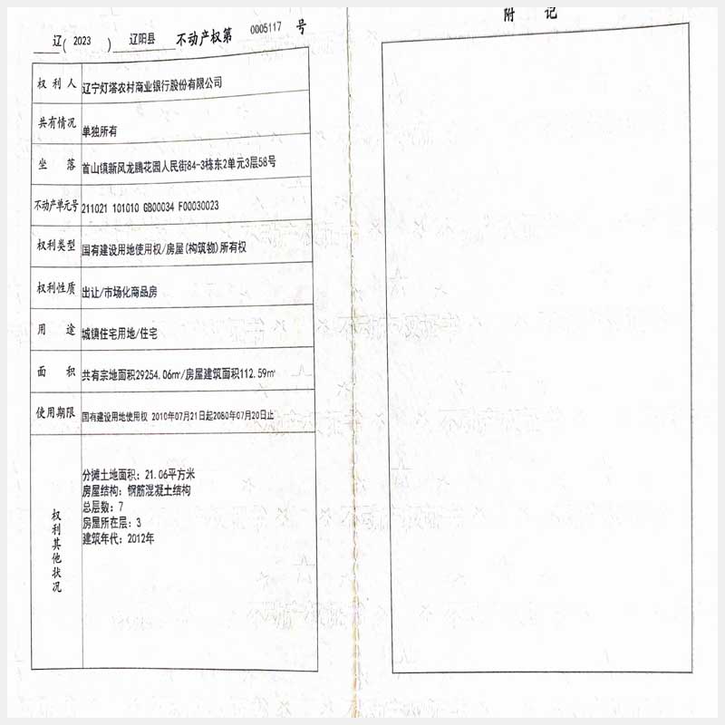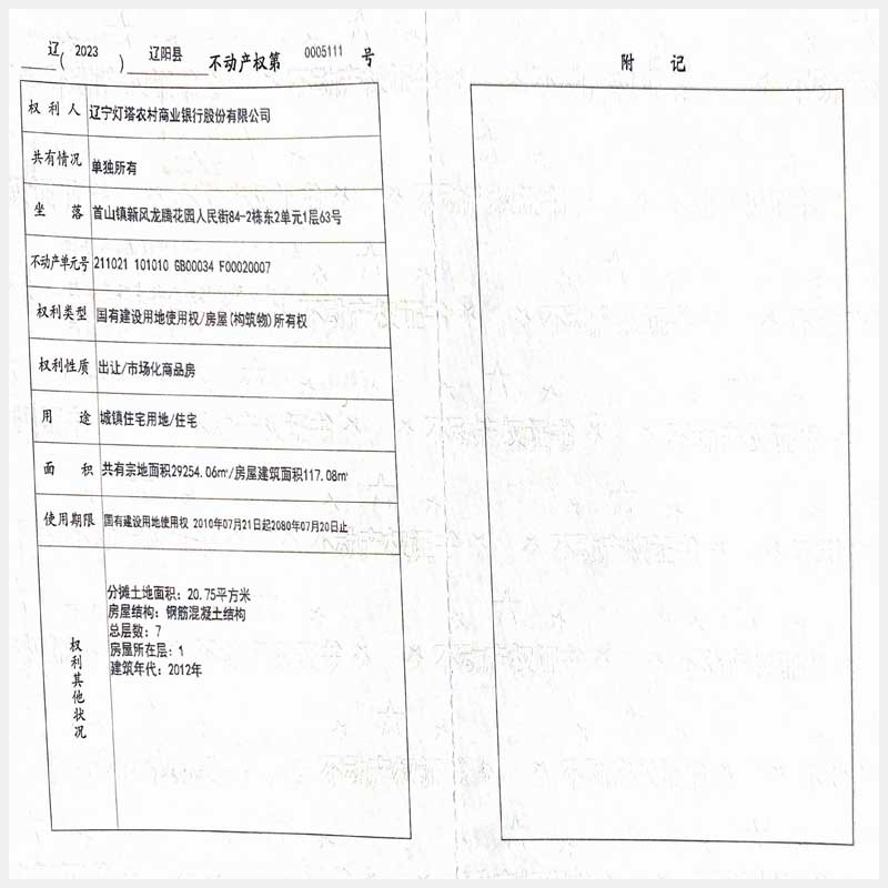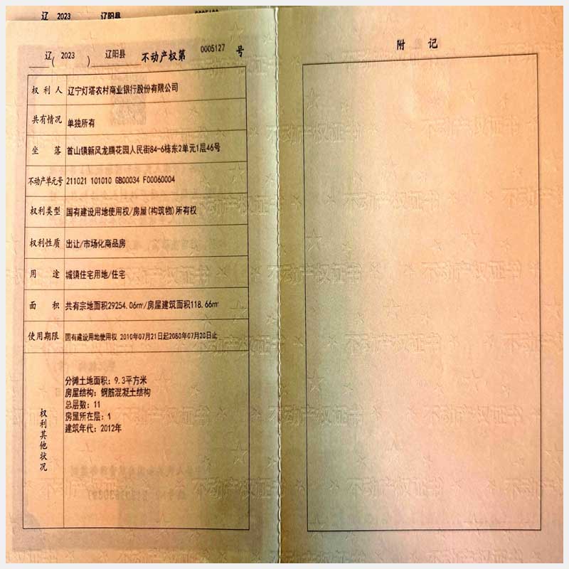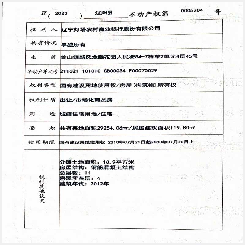 58號 遼陽市首山鎮(zhèn)新風(fēng)龍騰花園人民街84棟房產(chǎn)