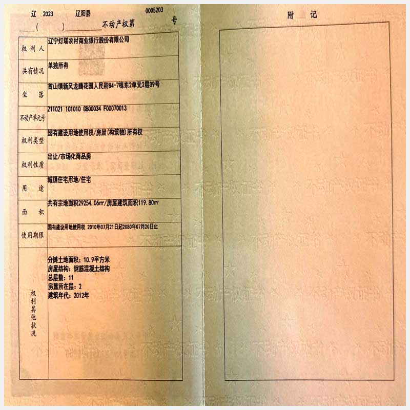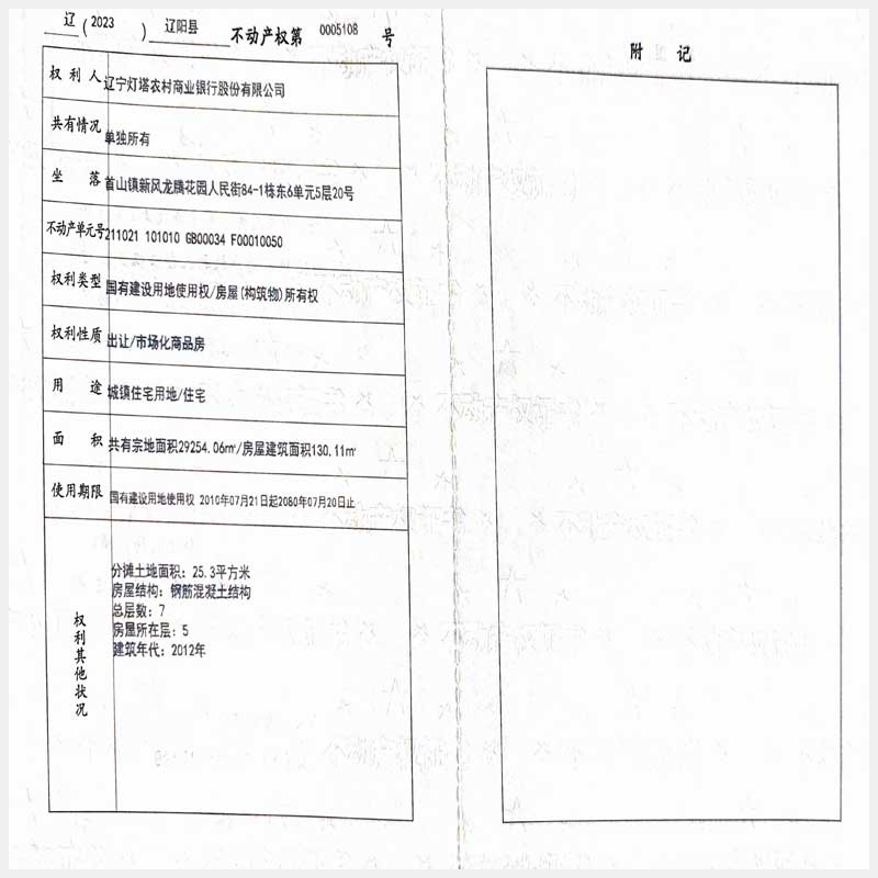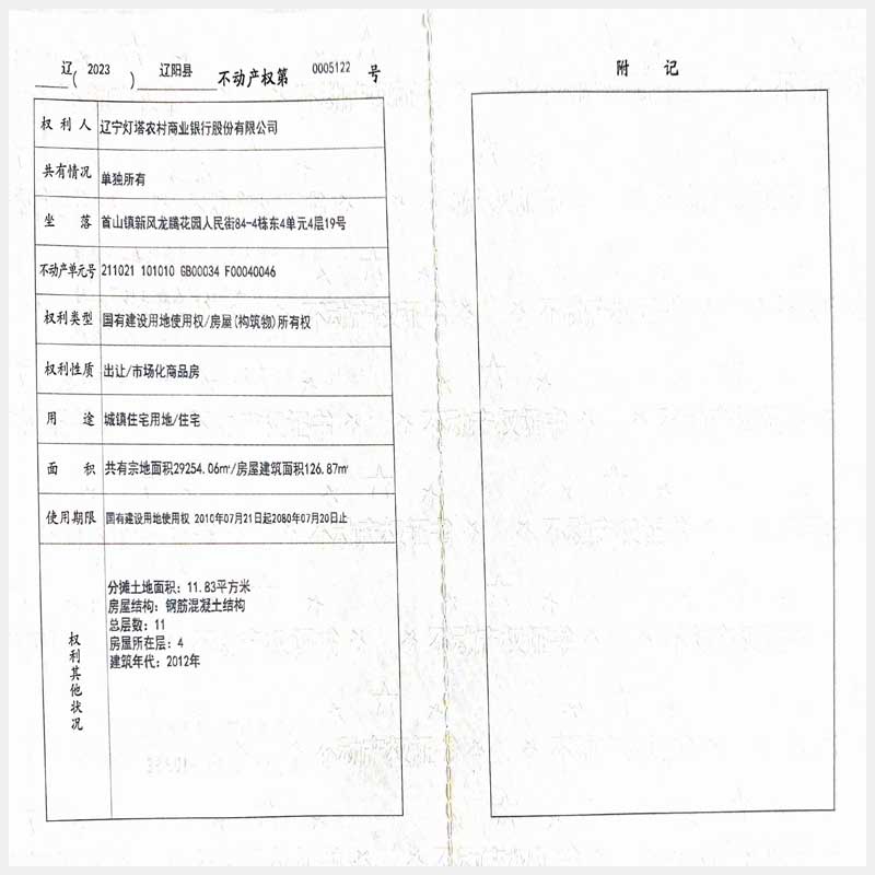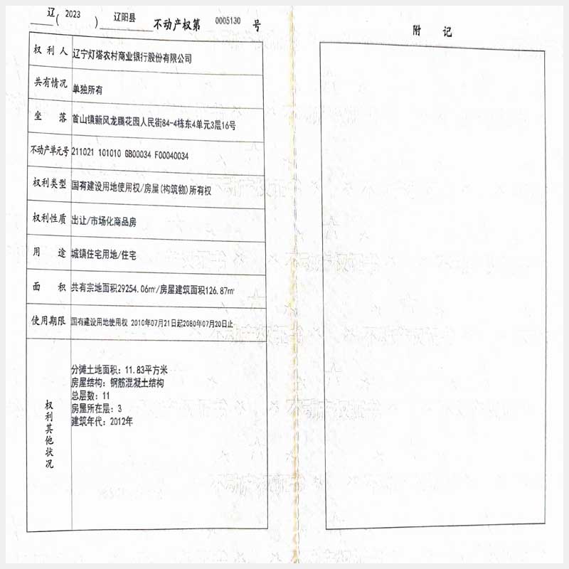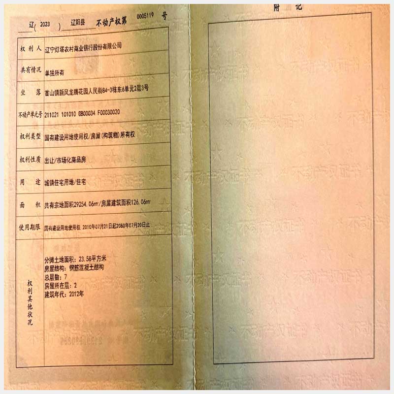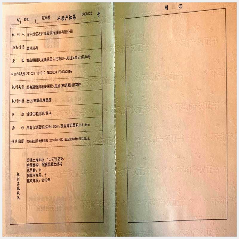 58號 遼陽市首山鎮(zhèn)新風(fēng)龍騰花園人民街84棟房產(chǎn)