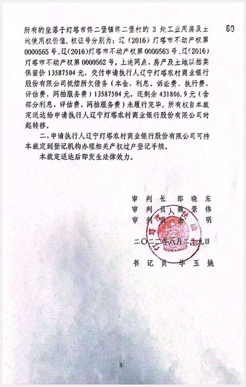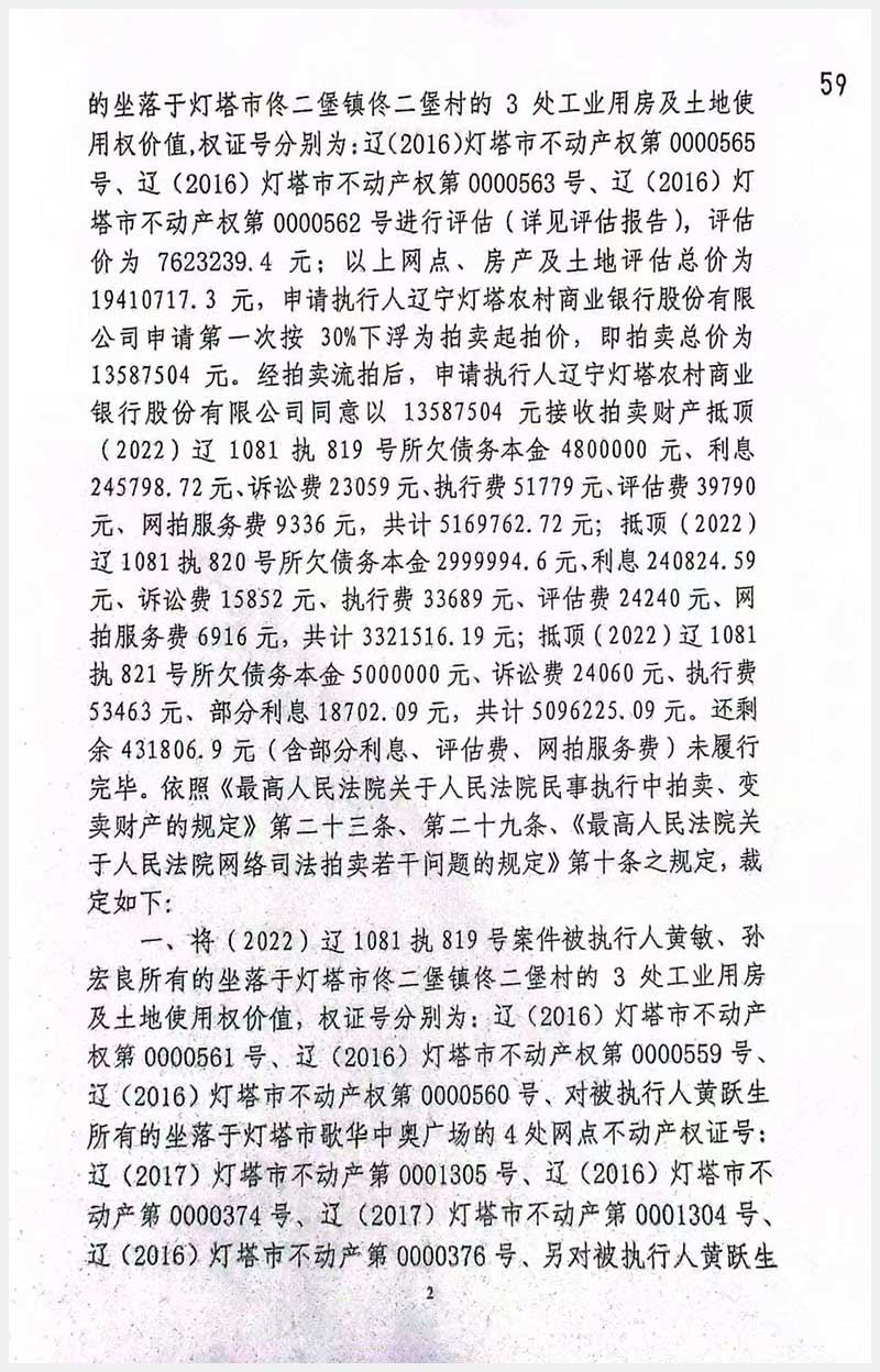 名稱:燈塔市佟二堡鎮(zhèn)佟二堡村房產(chǎn)及土地使用權(quán) 面積:房產(chǎn):1954.46㎡;土地:1727.01㎡ 瀏覽次數(shù):9