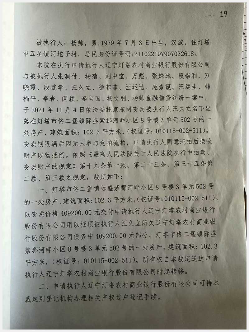 79號 燈塔市佟二堡鎮(zhèn)際盛紫郡河畔小區(qū)8號樓3單元502號房產(chǎn)