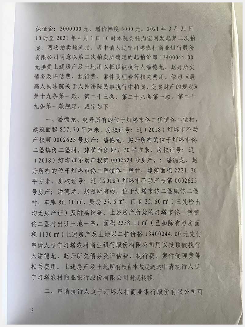 名稱:燈塔市佟二堡鎮(zhèn)佟二堡村房產(chǎn)及土地使用權(quán) 面積:房產(chǎn):有證:3079.06㎡,無證:139.3㎡;土地:3388.11㎡ 瀏覽次數(shù):10