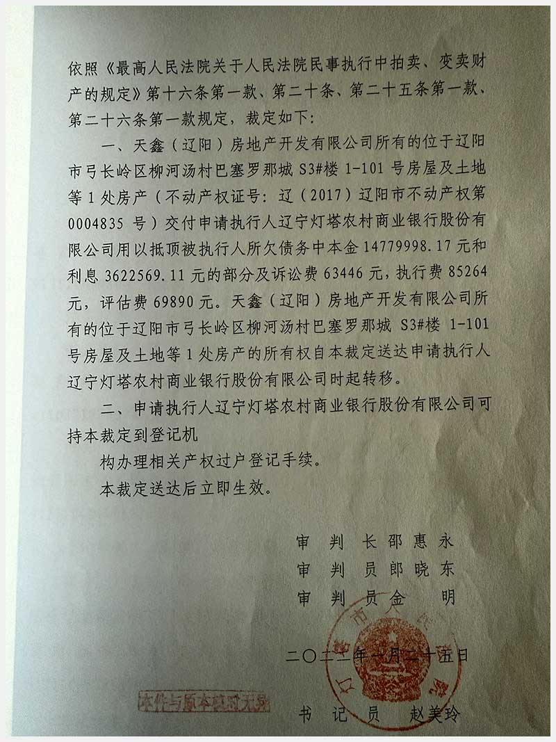 92號(hào) 遼陽(yáng)市弓長(zhǎng)嶺區(qū)柳河湯村巴塞羅那城S3#樓1-101號(hào)房產(chǎn)