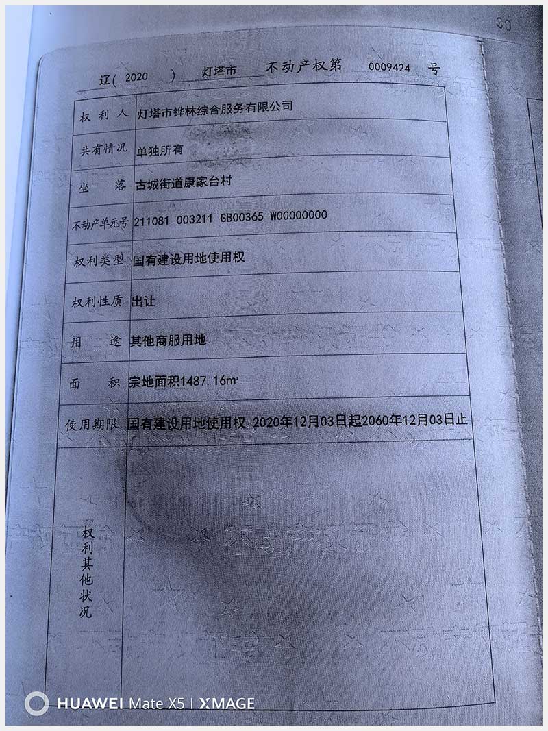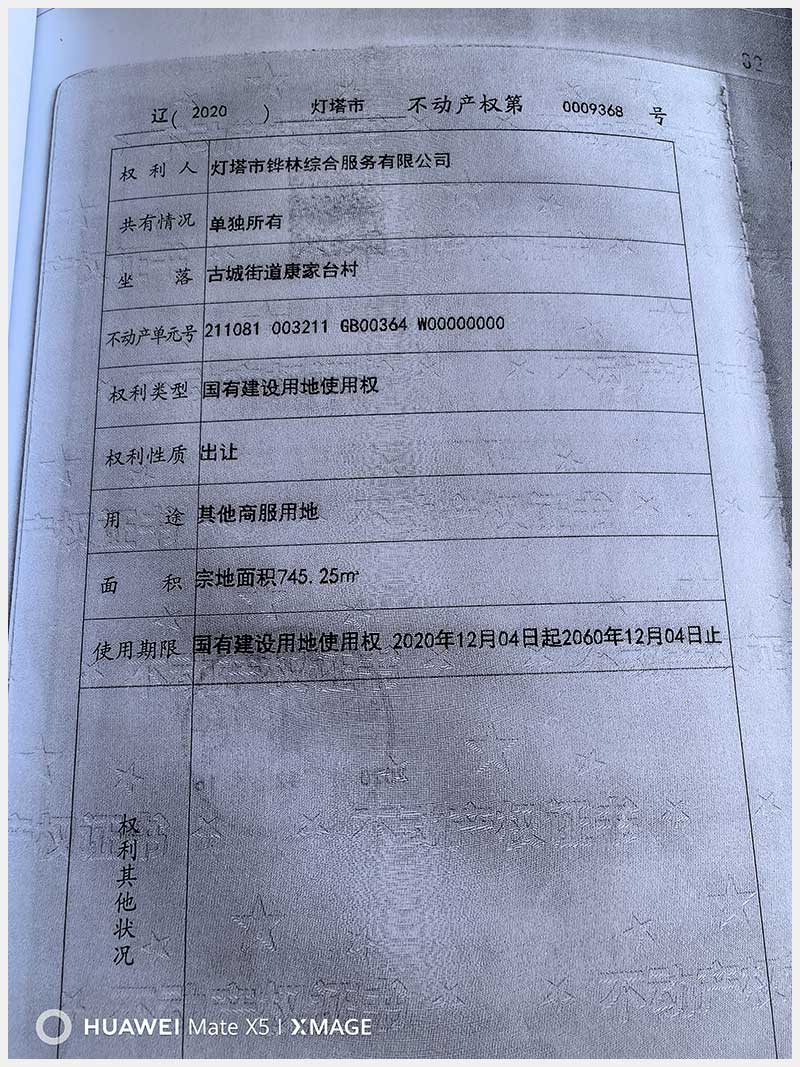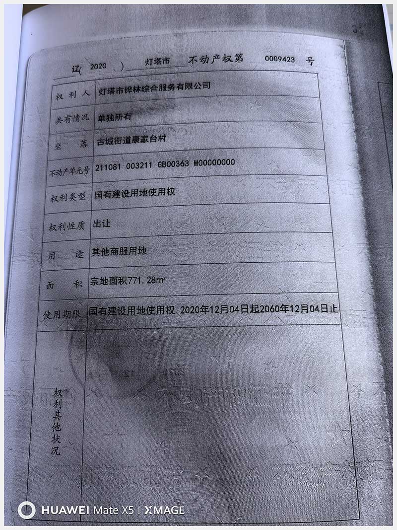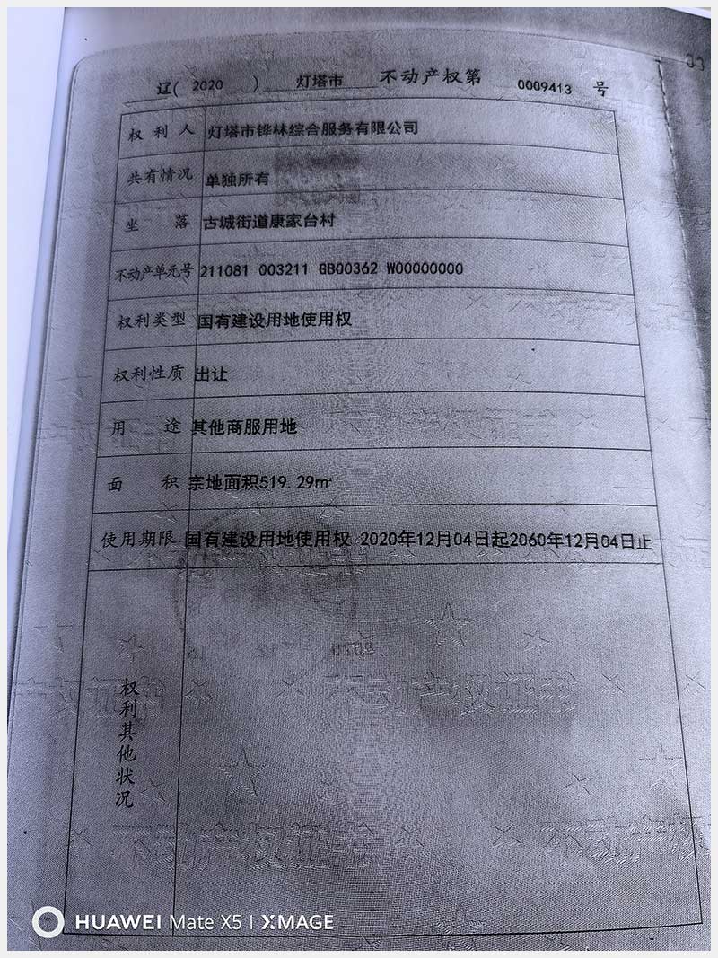 名稱:燈塔市古城街道唐家臺村房產及土地使用權 面積:房產:1224.62㎡;土地:3522.98㎡ 瀏覽次數:10