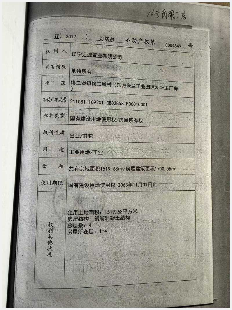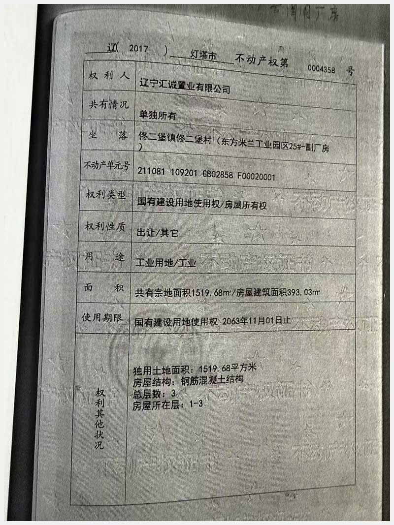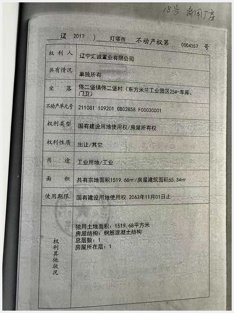 98號(hào) 燈塔市佟二堡鎮(zhèn)佟二堡村東方米蘭工業(yè)園區(qū)25#房產(chǎn)及土地使用權(quán)