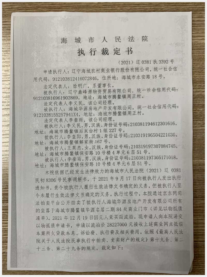 地址:海城市騰鰲鎮(zhèn)保安街道辦 標(biāo)的號:159