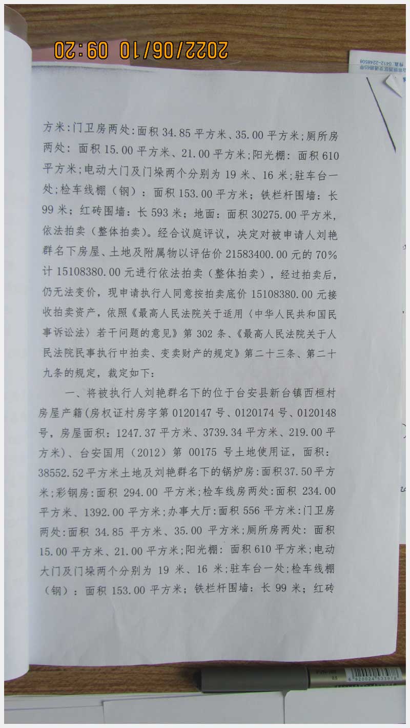 名稱:臺(tái)安縣新臺(tái)鎮(zhèn)西桓村房產(chǎn)及土地使用權(quán) 面積:房產(chǎn):5205.71㎡;土地:38552.52㎡ 瀏覽次數(shù):933