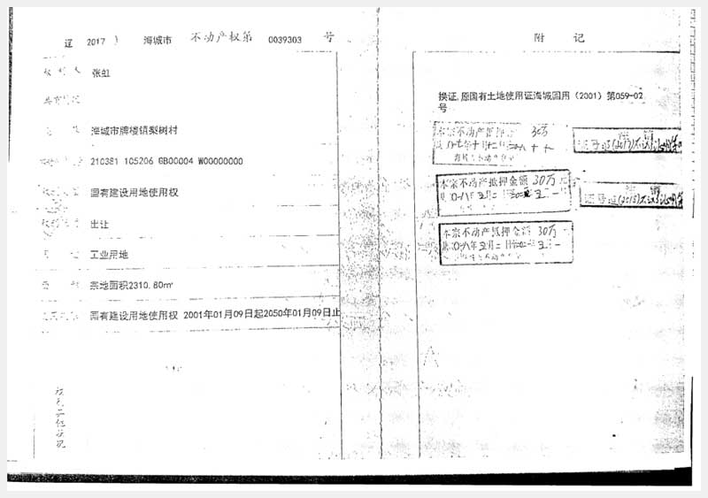 194號(hào) 海城市牌樓鎮(zhèn)工業(yè)區(qū)房產(chǎn)及梨樹村土地使用權(quán)