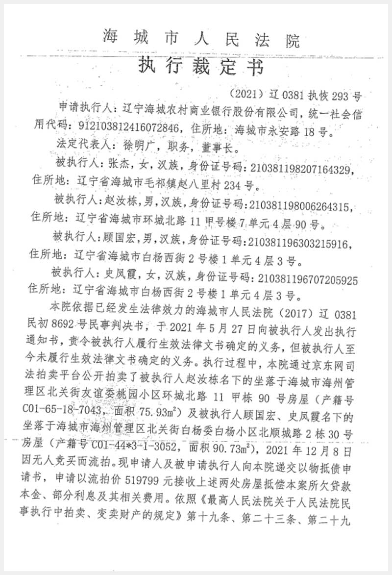 地址:海城市海州管理區(qū)北關街白楊委白楊小區(qū) 標的號:195