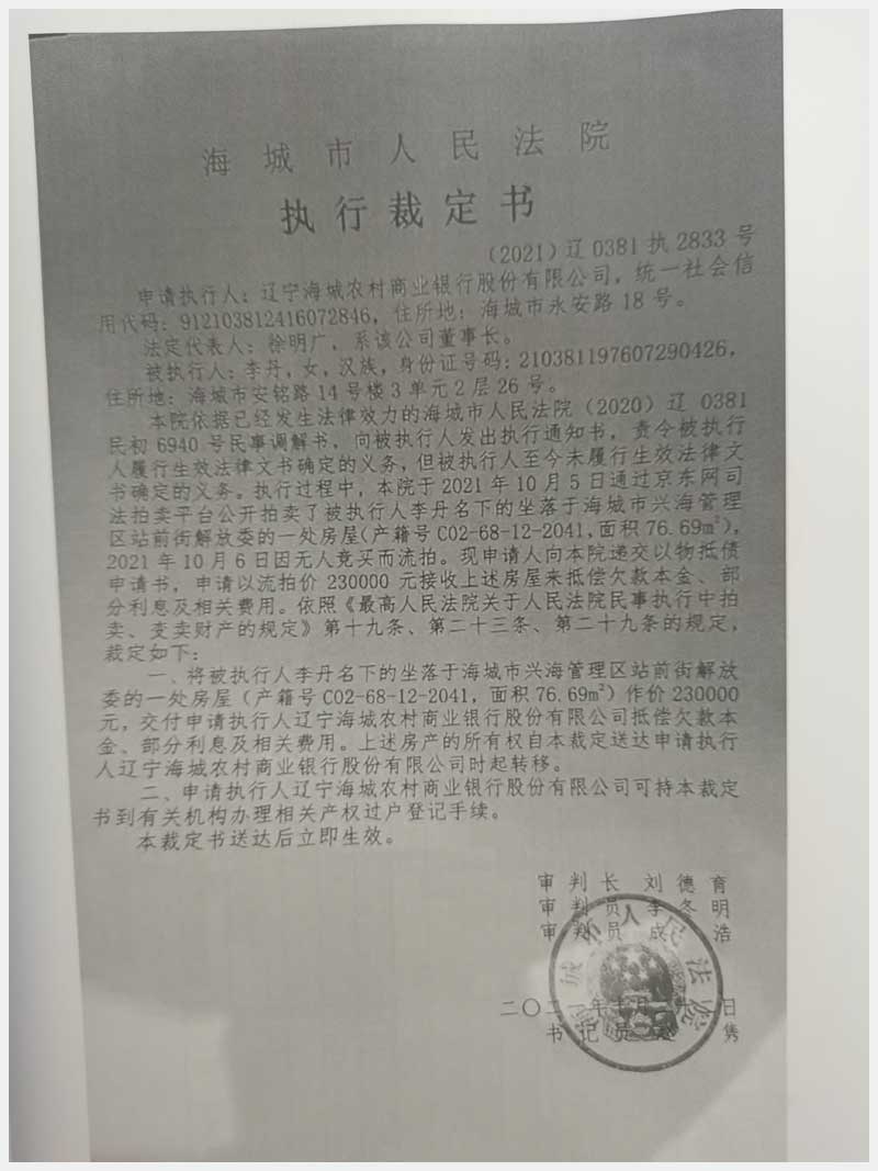 199號(hào) 海城市興海管理區(qū)站前街解放委房產(chǎn)