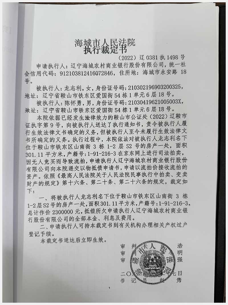 地址:鞍山市鐵東區(qū)山南街3棟 標(biāo)的號(hào):212