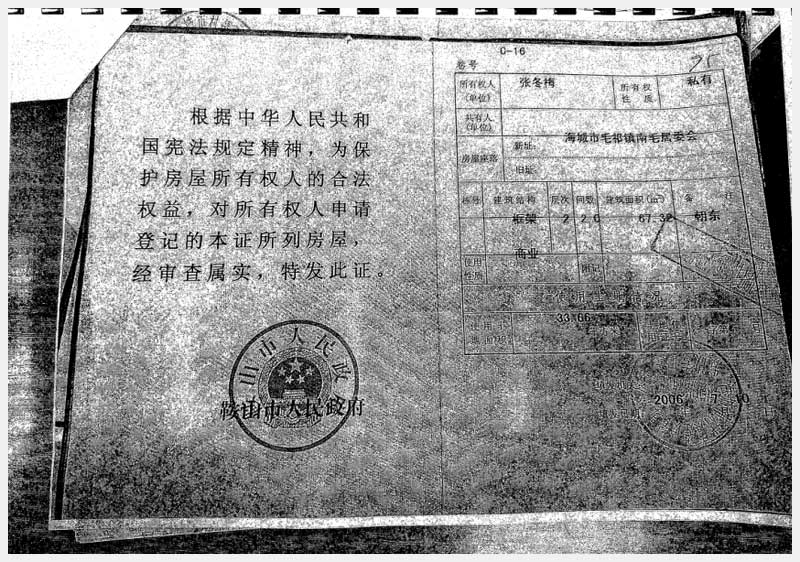 地址:海城市毛祁鎮(zhèn)小河居委會(huì) 標(biāo)的號(hào):216-2
