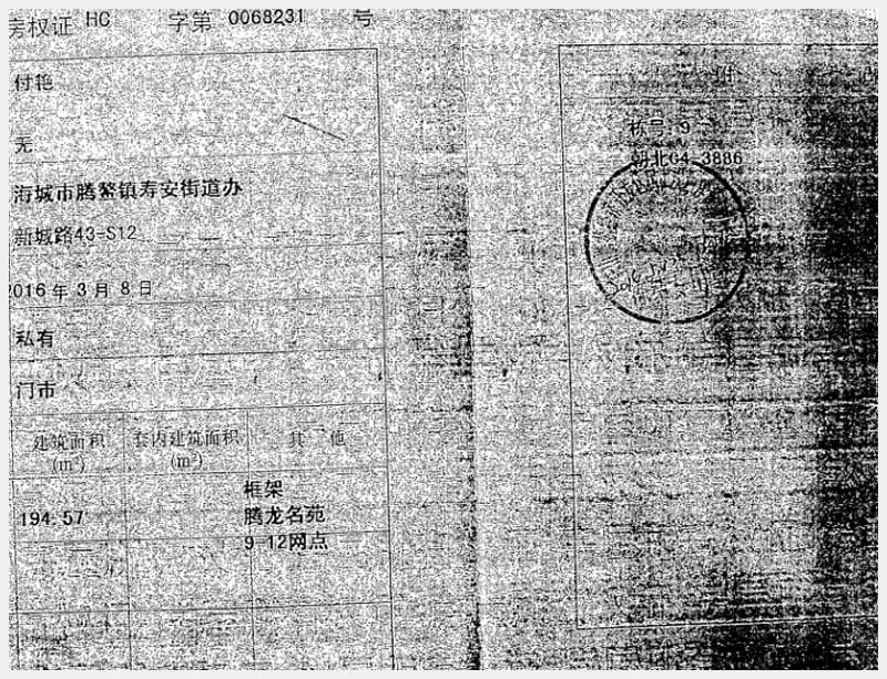 名稱:海城市騰鰲鎮(zhèn)壽安街道辦新城路43-S3、S4、S12號3處房產(chǎn) 面積:S3:160.96㎡;S4:212.89㎡;S12:194.57㎡ 瀏覽次數(shù):1147