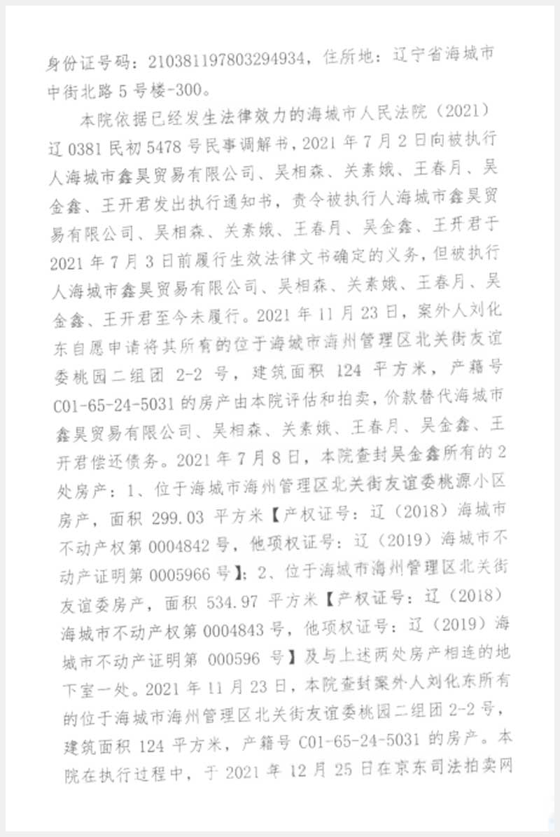 地址:海城市海州管理區(qū)北關(guān)街友誼委 標(biāo)的號:220