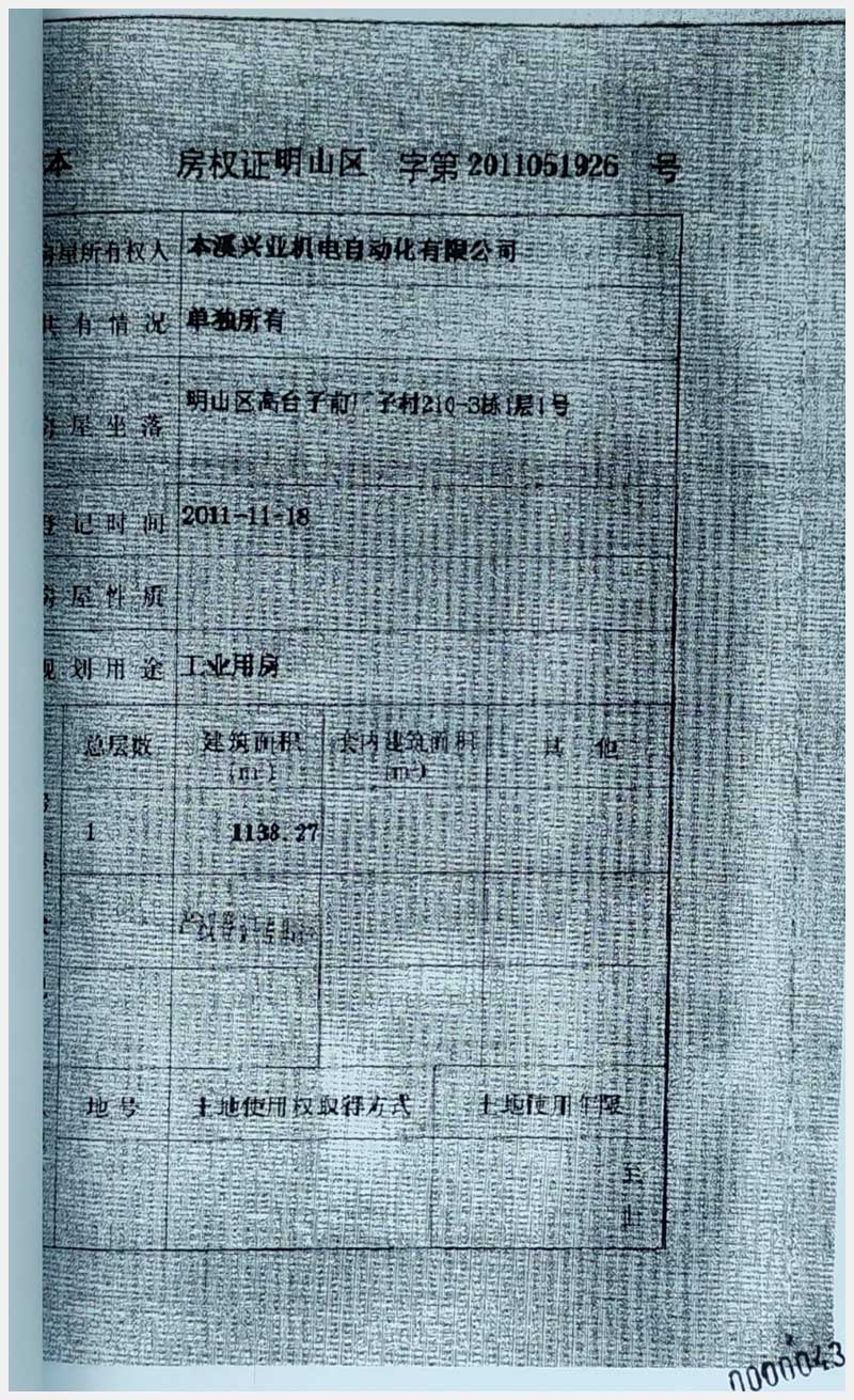 名稱:本溪市明山區(qū)高臺(tái)子前場(chǎng)路28-4棟1層房產(chǎn)及土地使用權(quán) 面積:房產(chǎn):4810.33㎡;土地:12300㎡ 瀏覽次數(shù):936