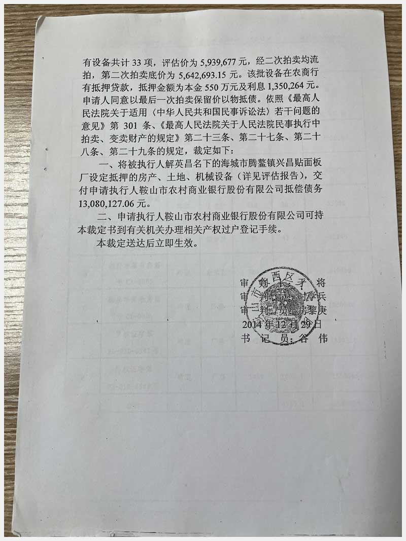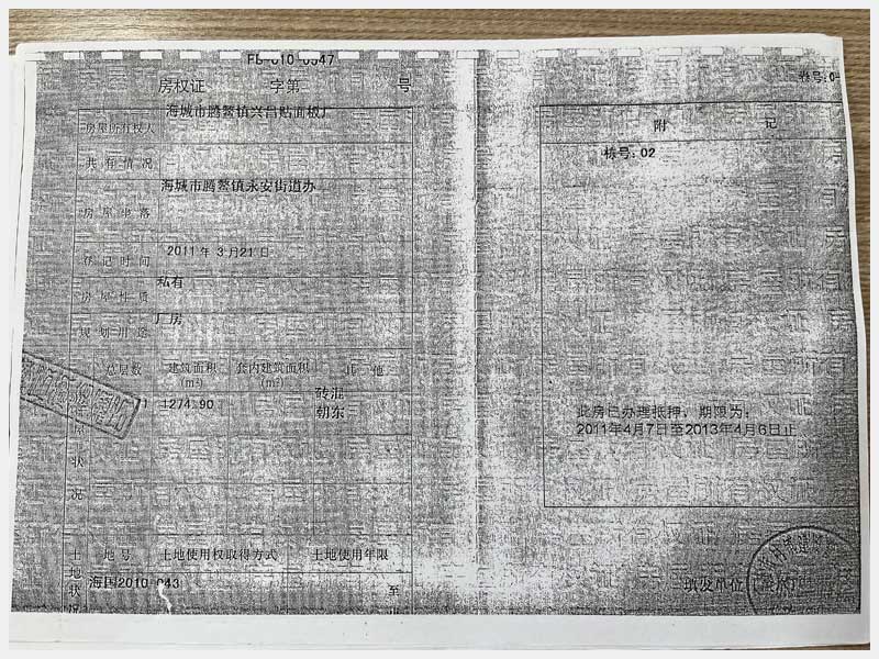 名稱:海城市騰鰲鎮(zhèn)永安路33號房產(chǎn)、土地使用權(quán)及機(jī)器設(shè)備 面積:房產(chǎn):4509㎡;土地:9917㎡;設(shè)備:46臺(套) 瀏覽次數(shù):1052