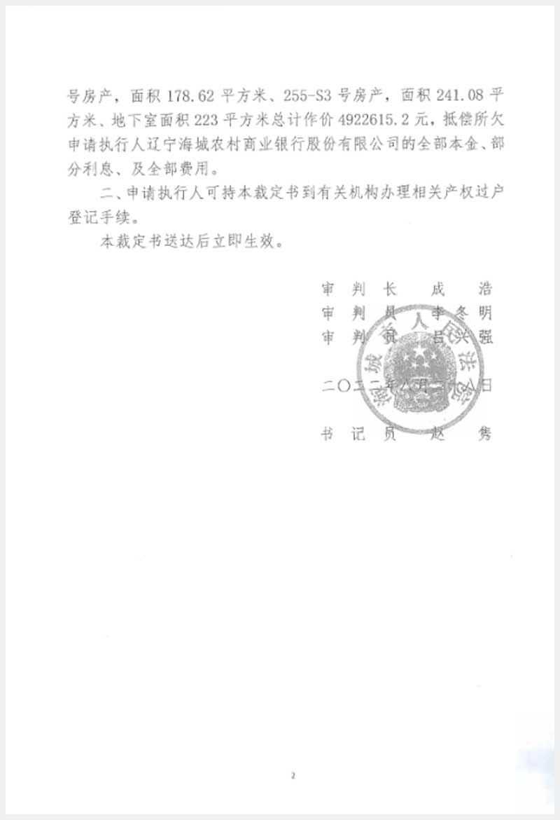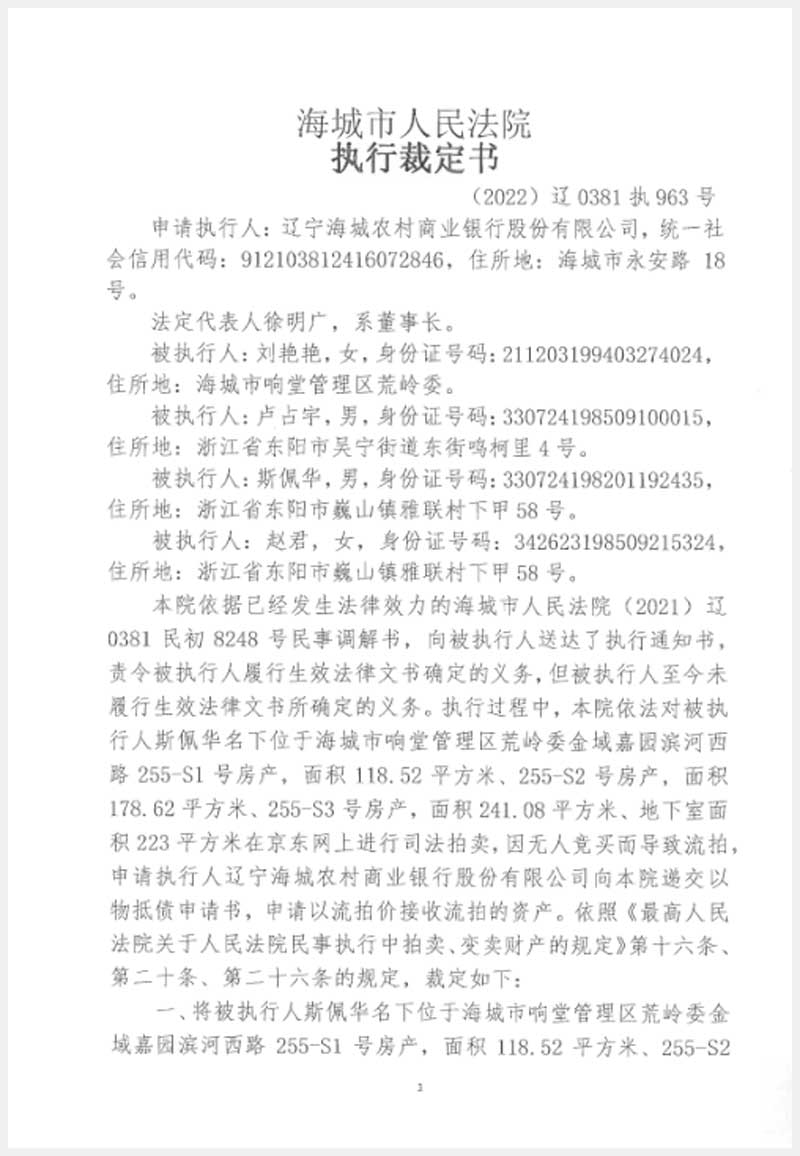 地址:海城市響堂管理區(qū)荒嶺委金域嘉園 標的號:235