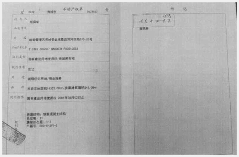 名稱:海城市響堂管理區(qū)荒嶺委金域嘉園濱河西路255-S1、S2、S3號房產(chǎn) 面積:有證:538.22㎡;無證:223㎡ 瀏覽次數(shù):838