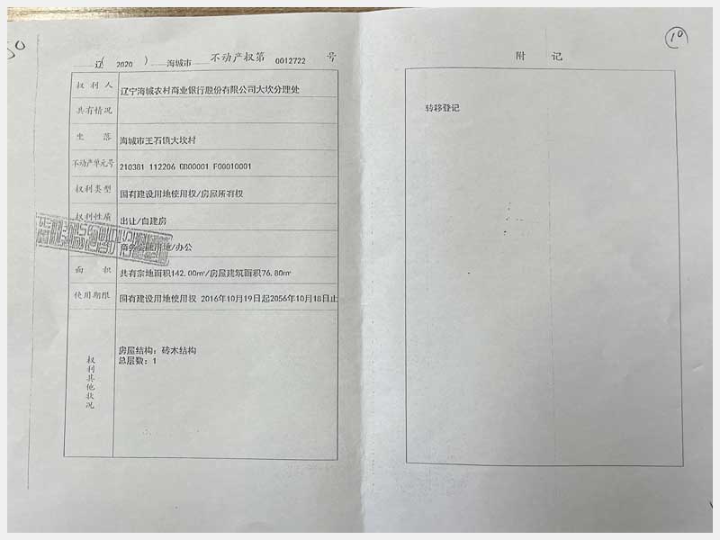 名稱:海城市王石鎮(zhèn)大坎村房產(chǎn) 面積:140㎡(有證面積76.8㎡) 瀏覽次數(shù):749