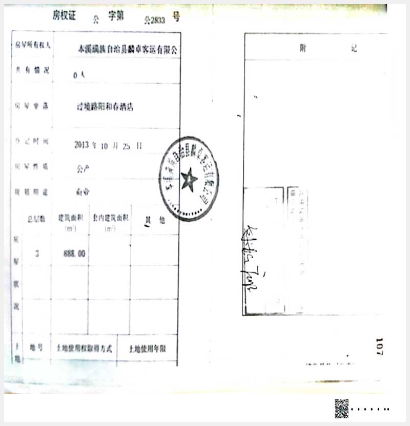 111號 本溪滿族自治縣過境路陽和春酒店房產(chǎn)