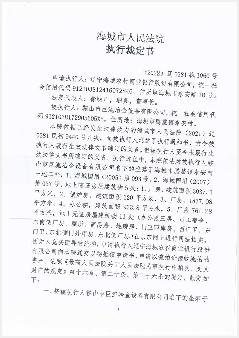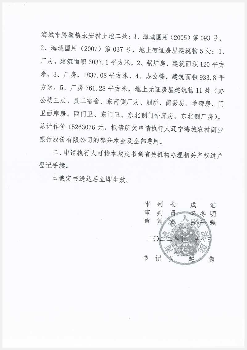 名稱:海城市騰鰲鎮(zhèn)永安村房產(chǎn)及土地使用權(quán) 面積:房產(chǎn):6689.26㎡;土地:34399㎡ 瀏覽次數(shù):1206