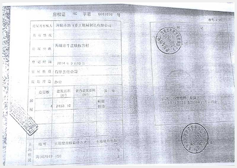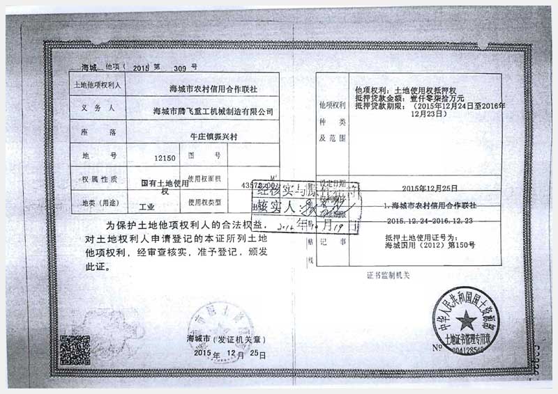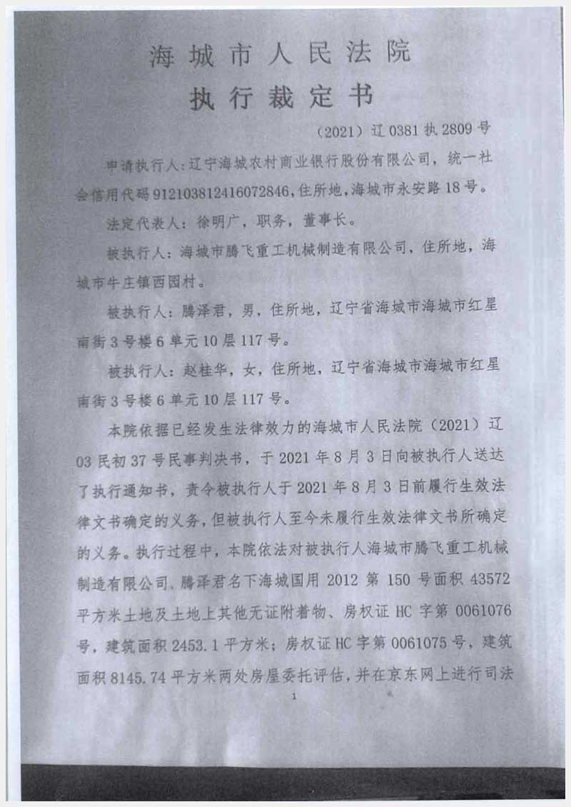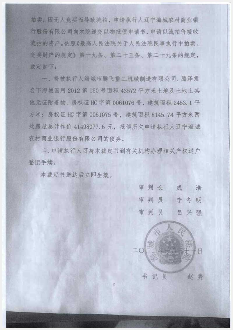 260號 海城市騰飛重工機械制造有限公司房產(chǎn)及土地使用權(quán)