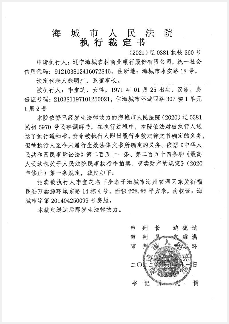 261號(hào) 海城市海州管理區(qū)東關(guān)街富民委萬(wàn)鑫源環(huán)城東路14棟4號(hào)房產(chǎn)