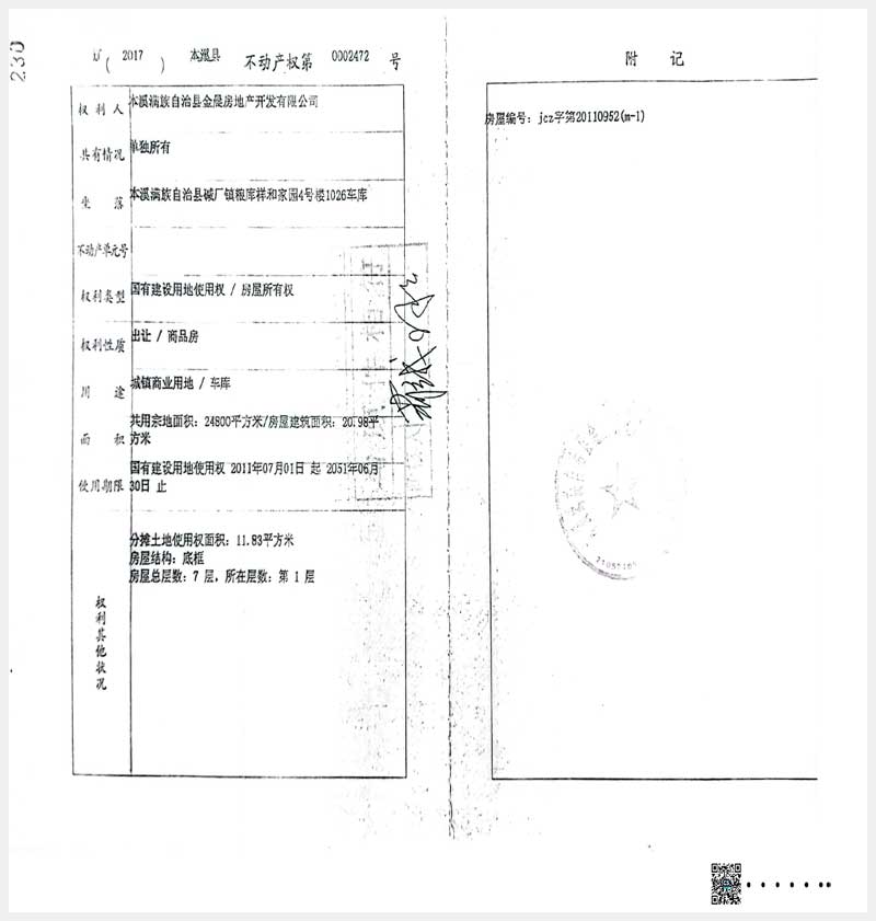 148-7號(hào) 本溪滿(mǎn)族自治縣堿廠鎮(zhèn)糧庫(kù)祥和家園4號(hào)樓1026車(chē)庫(kù)