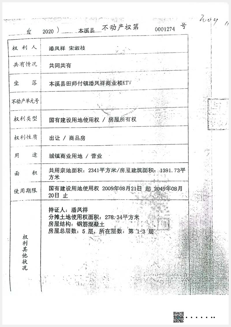 153-1號 本溪滿族自治縣田師付鎮(zhèn)潘鳳祥商業(yè)樓KTV