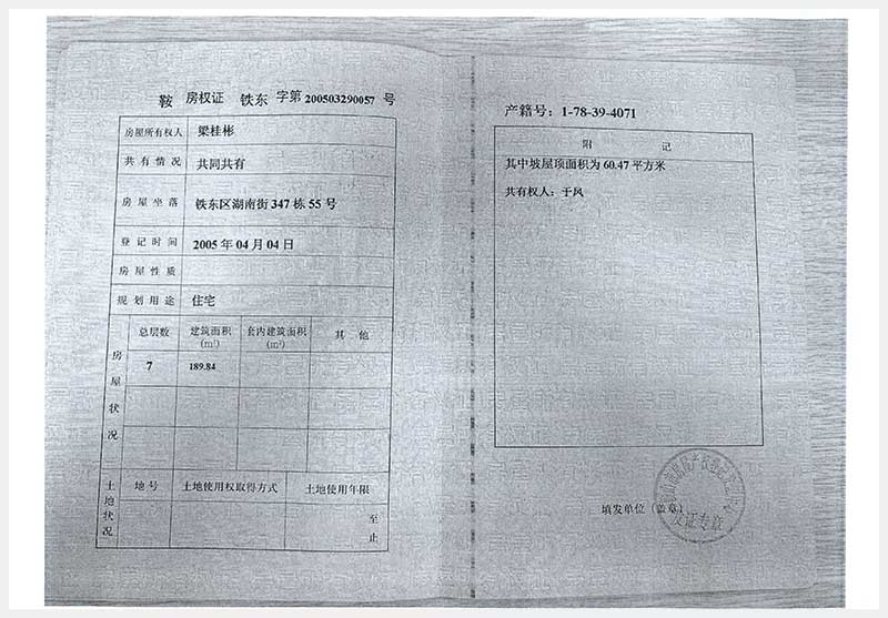 名稱:鞍山市鐵東區(qū)湖南街347棟55號房產(chǎn) 面積:189.84㎡ 瀏覽次數(shù):80