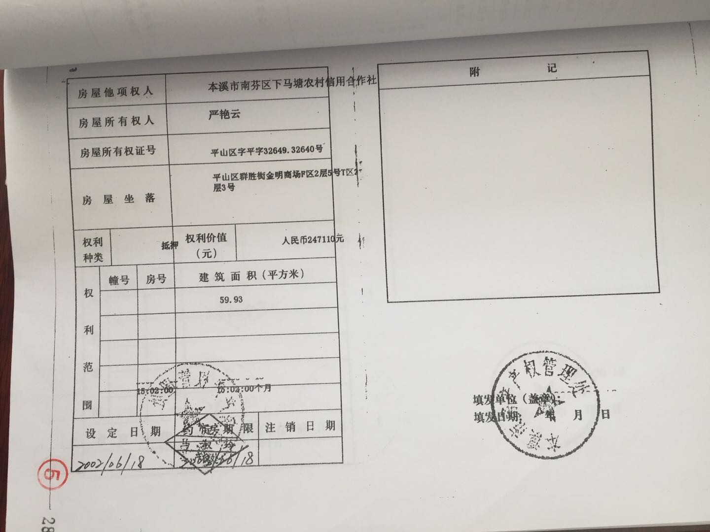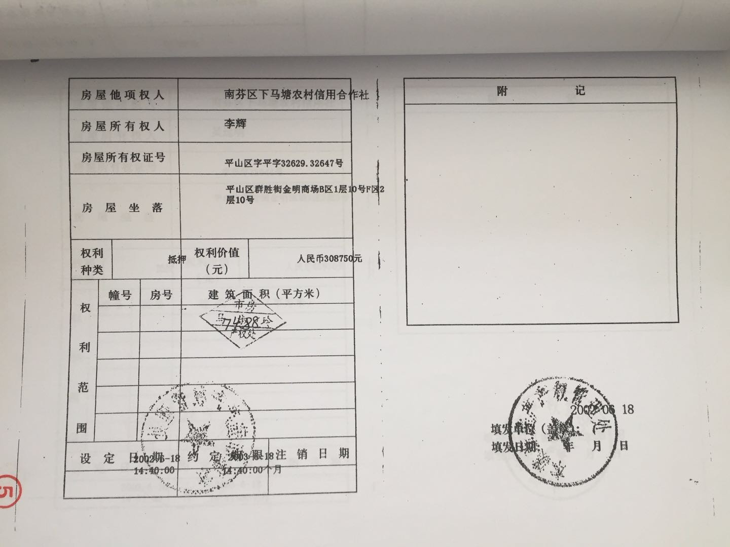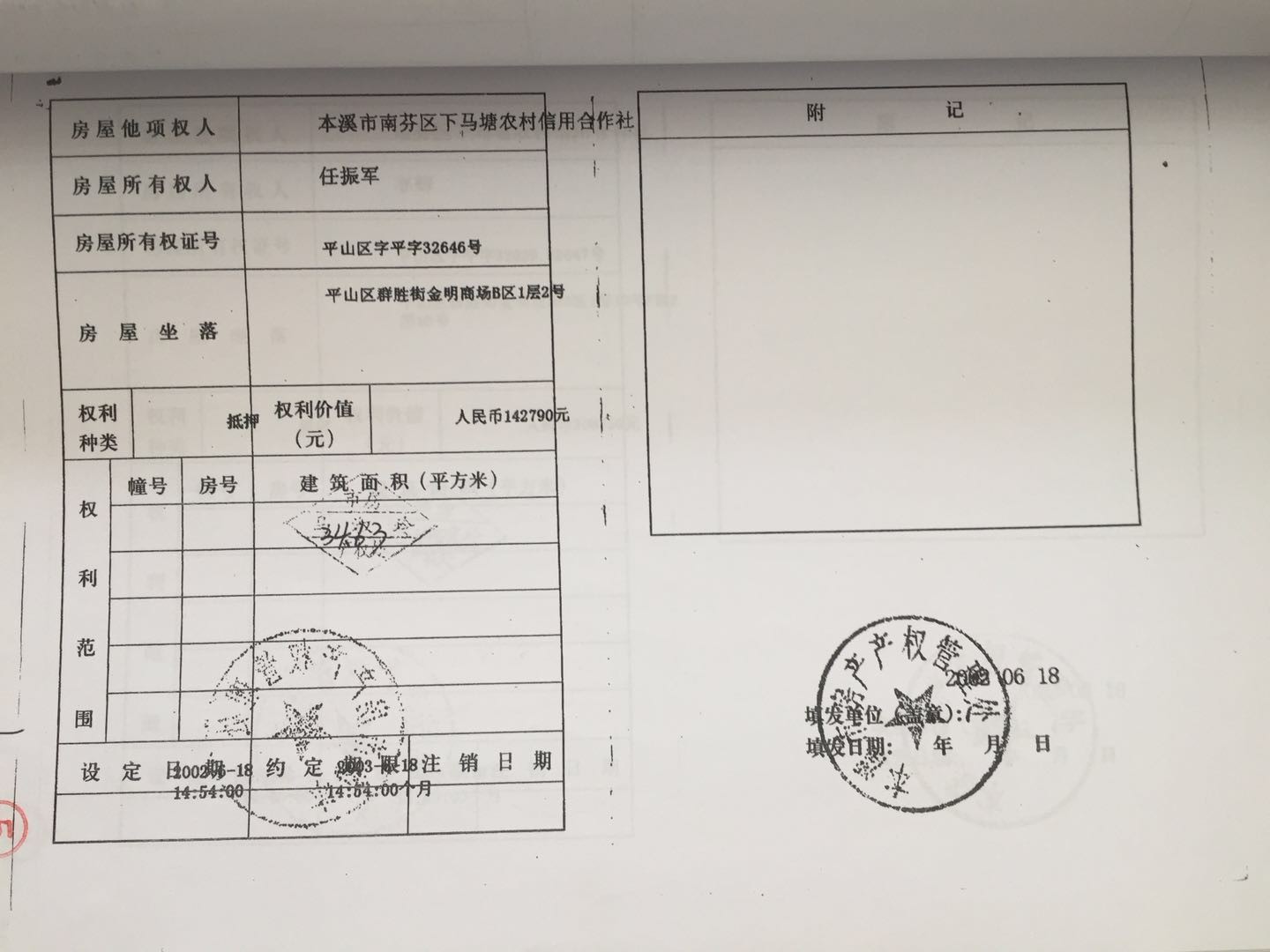 地址:平山區(qū)群勝街金明商場 標的號:25
