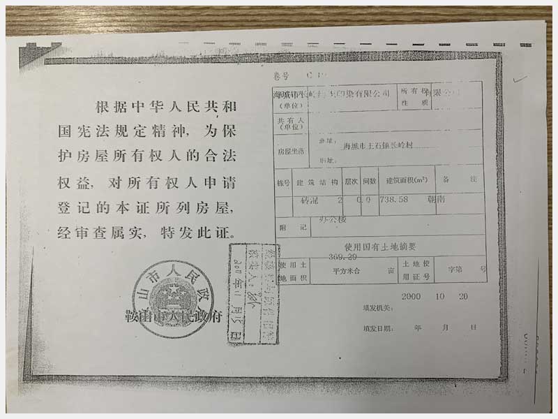 44號(hào) 海城市王石鎮(zhèn)長嶺村廠房及土地使用權(quán)