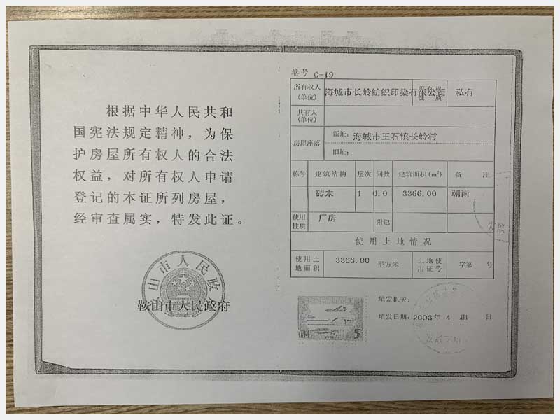名稱:海城市王石鎮(zhèn)長嶺村廠房及土地使用權(quán) 面積:房產(chǎn):有房證面積:5064.3㎡,無房證面積:1162.88㎡、土地:6958㎡ 瀏覽次數(shù):1501