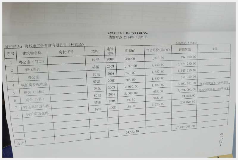 名稱:海城市高坨鎮(zhèn)桑樹村房產(chǎn)、構(gòu)筑物及其他輔助設(shè)施 面積:房產(chǎn):3602.3㎡、雞舍:20960㎡ 瀏覽次數(shù):1486