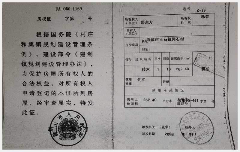 134號(hào) 海城市王石鎮(zhèn)聞石村房產(chǎn)