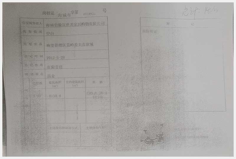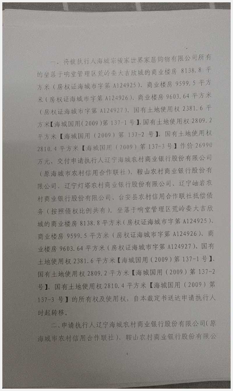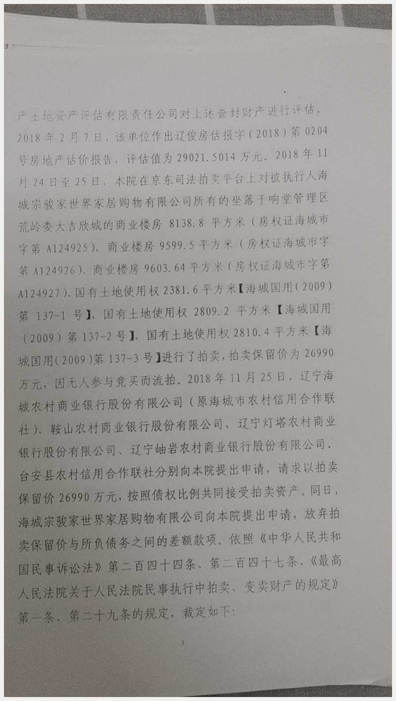 135號 海城宗駿家世界所屬的位于海城市響堂管理區(qū)荒嶺委大吉欣城商業(yè)樓房及國有土地使用權