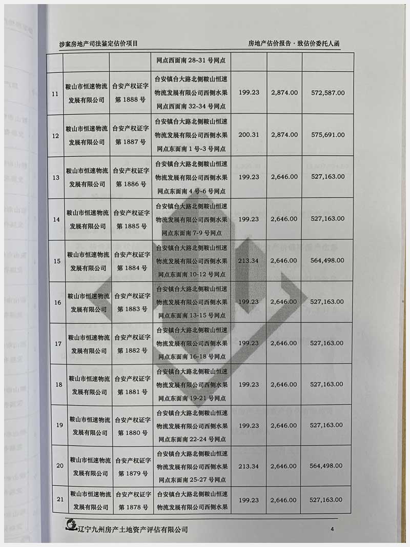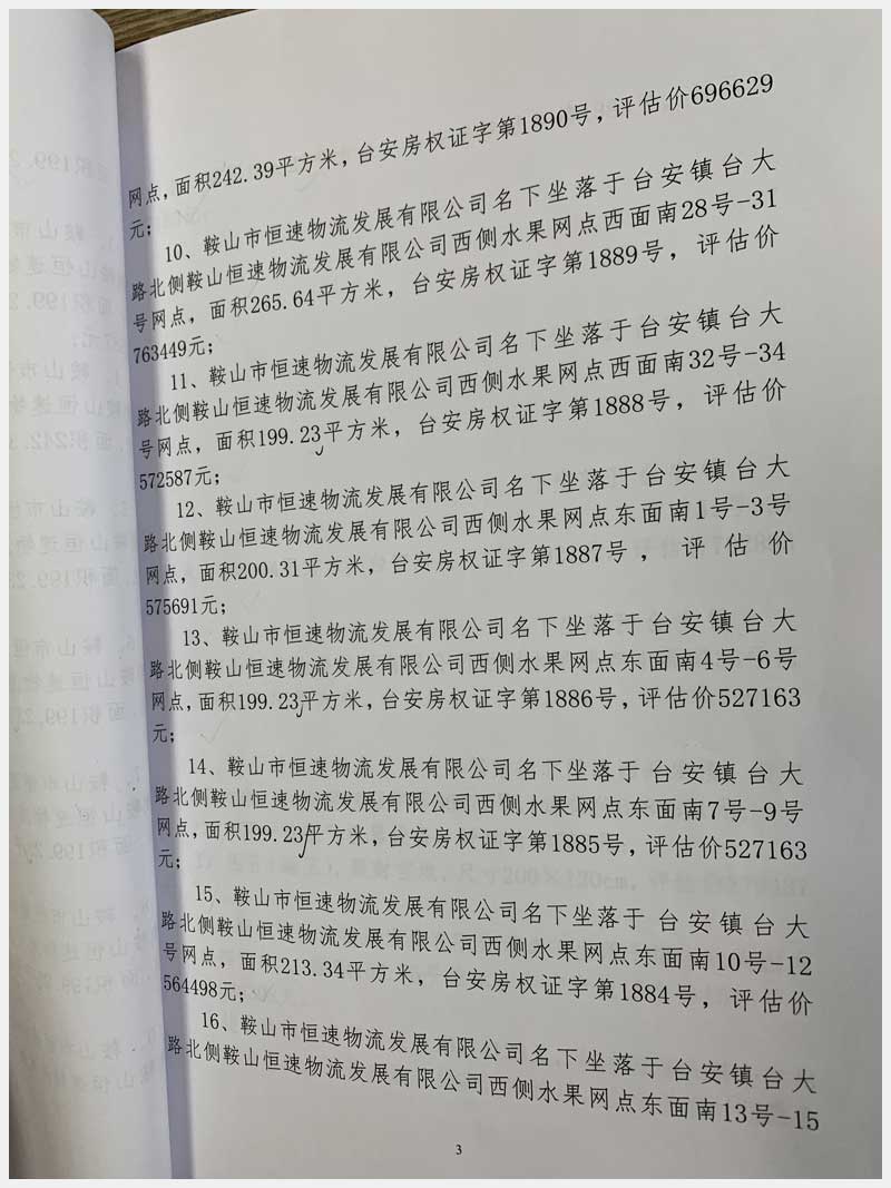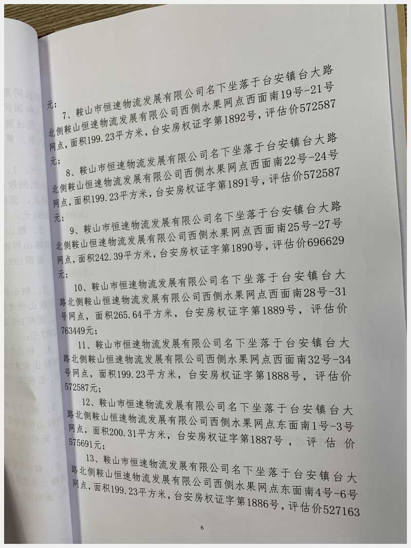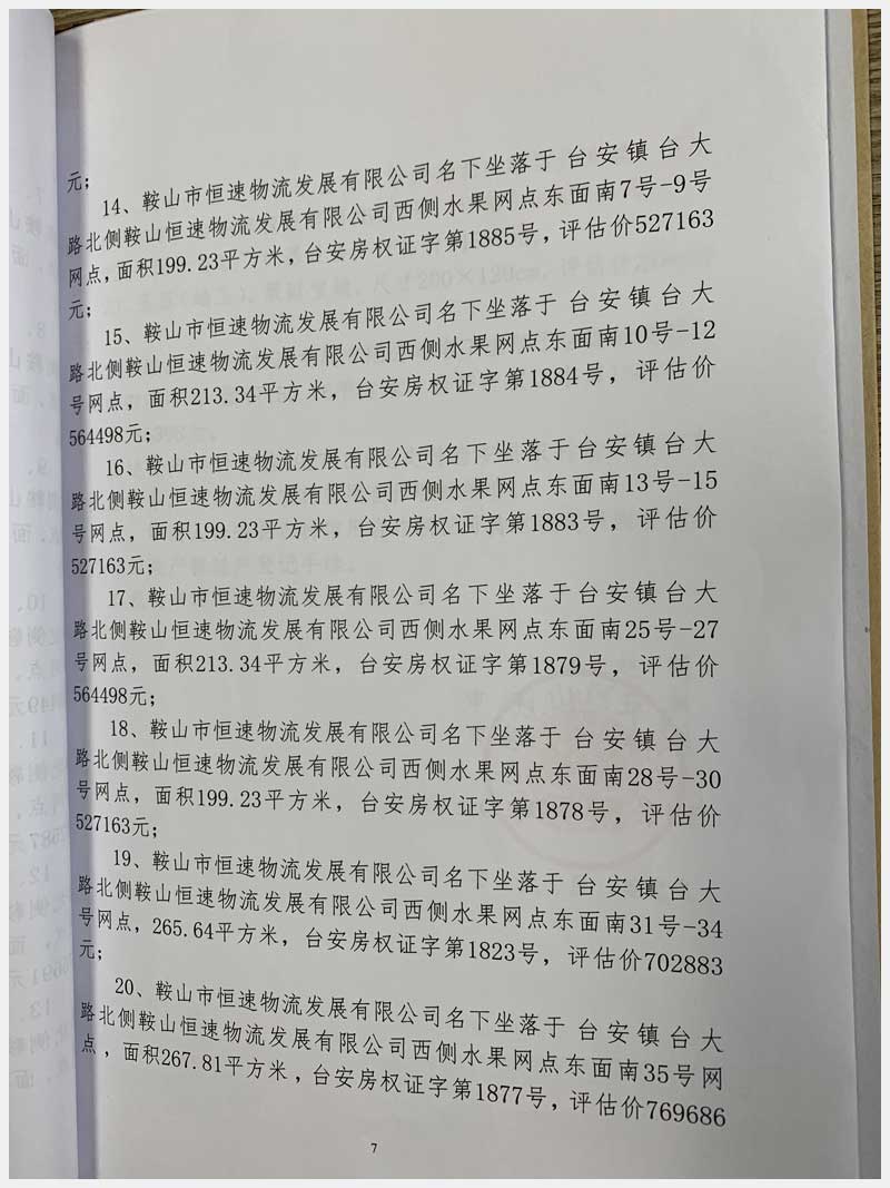 地址:臺安鎮(zhèn)臺大路北側(cè)鞍山恒速物流發(fā)展有限公司 標(biāo)的號:71
