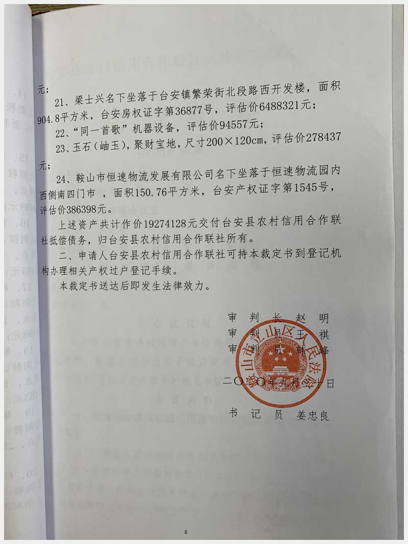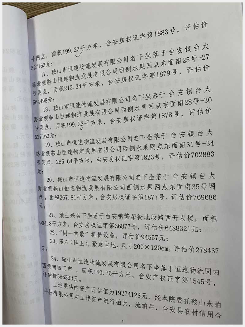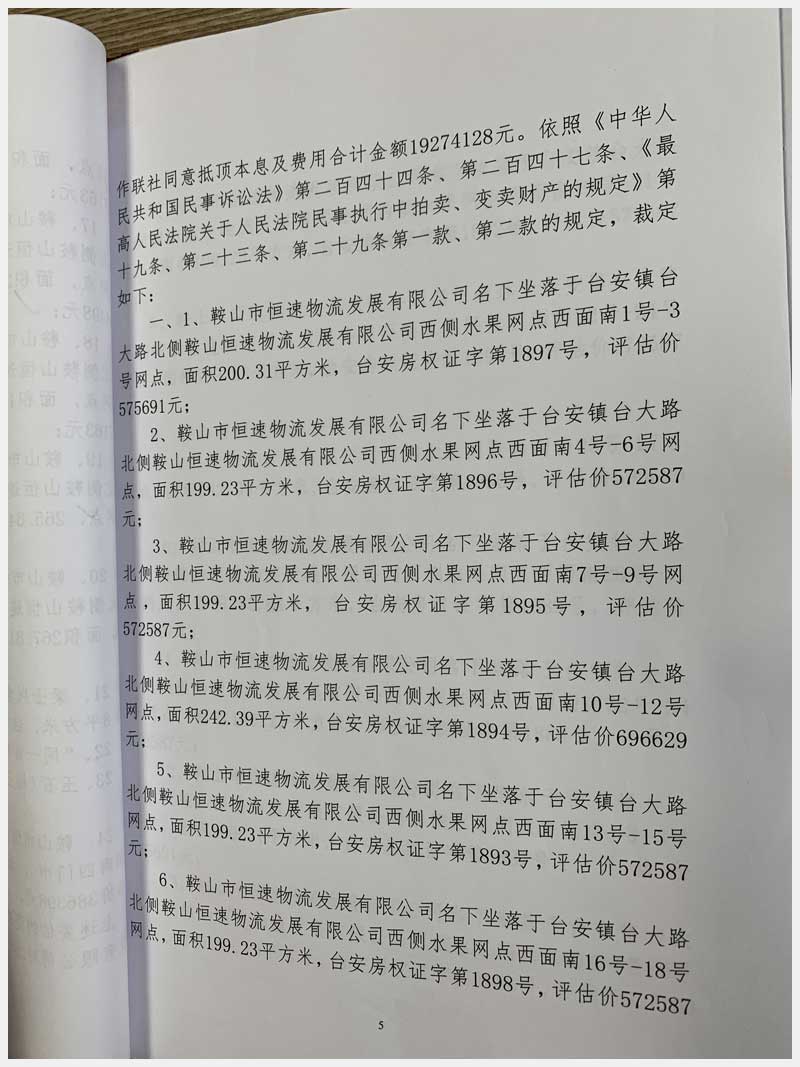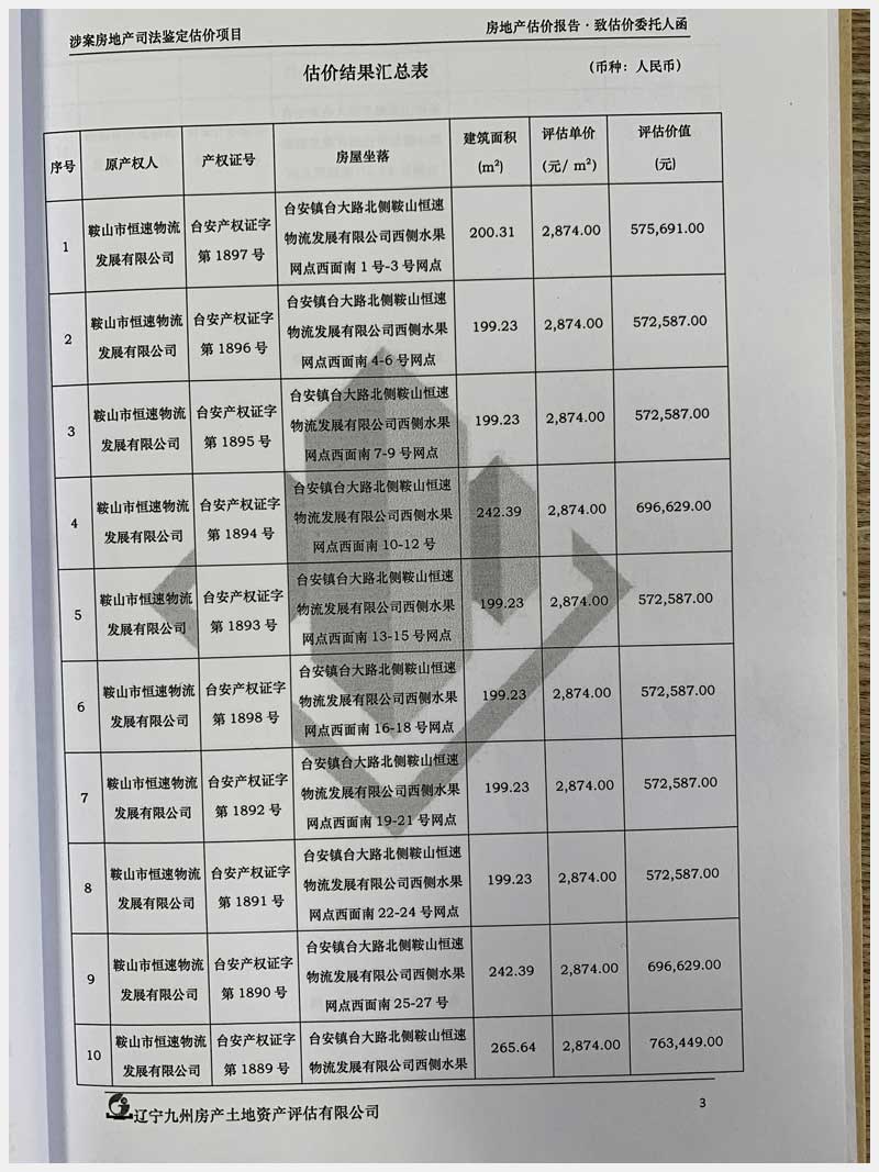 地址:臺安鎮(zhèn)臺大路北側(cè)鞍山恒速物流發(fā)展有限公司 標(biāo)的號:71