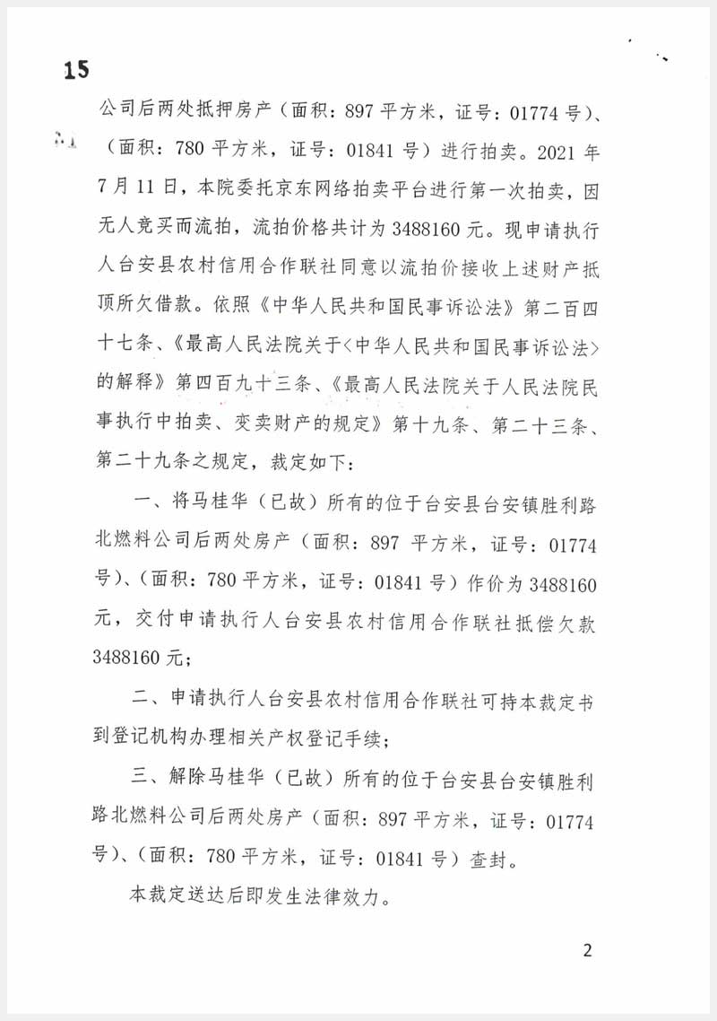 名稱:臺(tái)安縣臺(tái)安鎮(zhèn)勝利路北燃料公司后2處房產(chǎn)及工業(yè)用地 面積:房產(chǎn):1677㎡;土地:3707.9㎡ 瀏覽次數(shù):1235