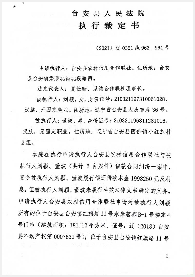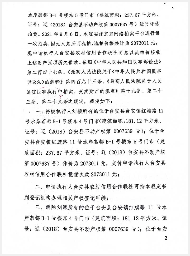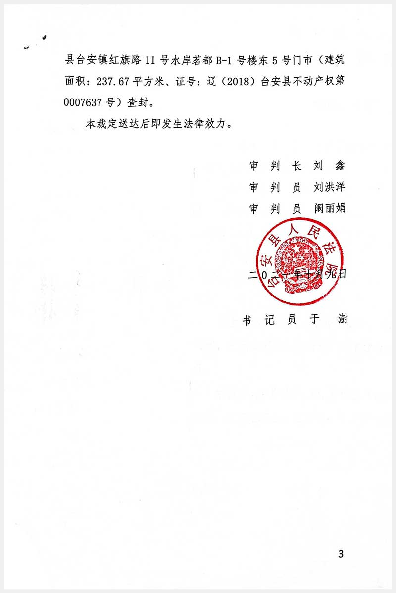 地址:臺安縣臺安鎮(zhèn)紅旗路11號水岸茗都 標的號:98
